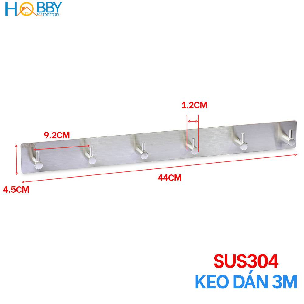 ✨Thanh treo quần áo 6 chấu inox 304 dán tường Hobby Home Decor 6TV160
