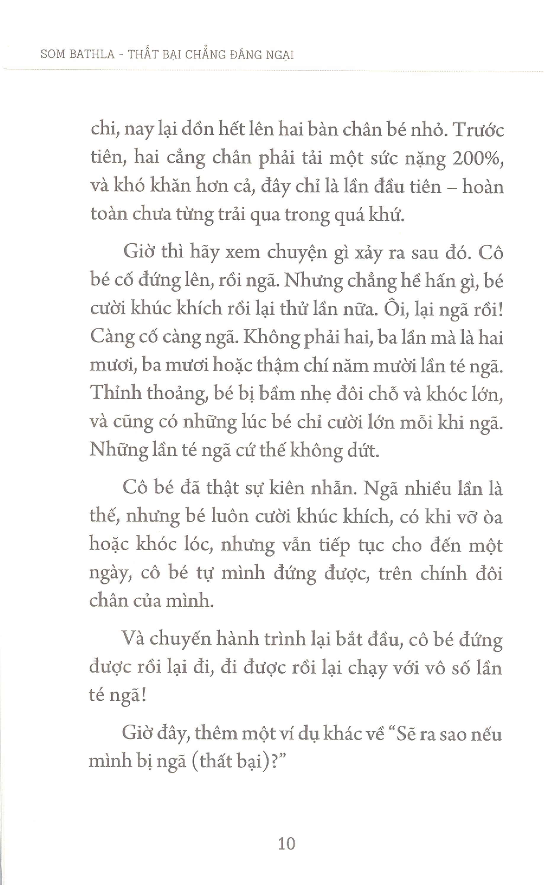 Nếu mình thi rớt…? Nếu mình không thuyết phục được khách hàng…? Nếu mình lúng túng khi thuyết trình…? Nếu mình không làm tốt buổi phỏng vấn…? Mỗi ngày, có bao nhiêu câu hỏi tương tự như thế xuất hiện trong tâm trí bạn? Những lo lắng, sợ hãi này có thể khiến trán bạn đổ mồ hôi, lòng bàn tay ướt đẫm, và cổ họng khô ran? Nếu bạn nghĩ rằng mình không dám hành động do sợ thất bại; nếu bạn luôn tin thất bại là một thảm họa khủng khiếp; thì đã đến lúc bạn nên nhìn thế giới bằng một lăng kính mới. Qua cuốn sách này, Som Bathla sẽ giúp bạn nhìn nỗi sợ thất bại theo một cách khác, để bạn hiểu và tạo dựng một mối quan hệ khác với thất bại. Bạn sẽ thấy thất bại là điều cần thiết và cần phải trải nghiệm trước khi có thể đạt được bất kỳ thành tựu nào.