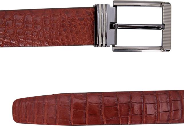 Dây nịt da cá sấu màu nâu đỏ da bụng