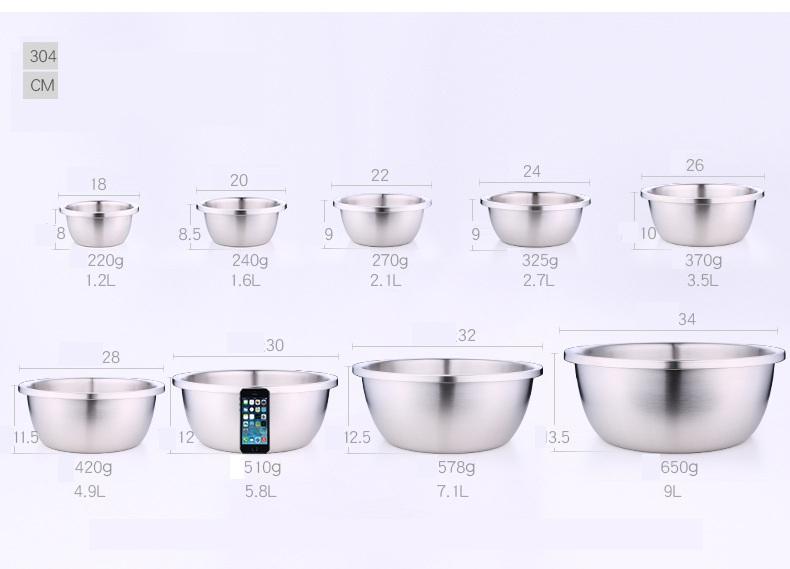 Combo 5 thau Inox 304 đủ size 20,22,24,26,28 cm. Đựng rau quả, thực phẩm làm bánh. Hàng dày đa năng