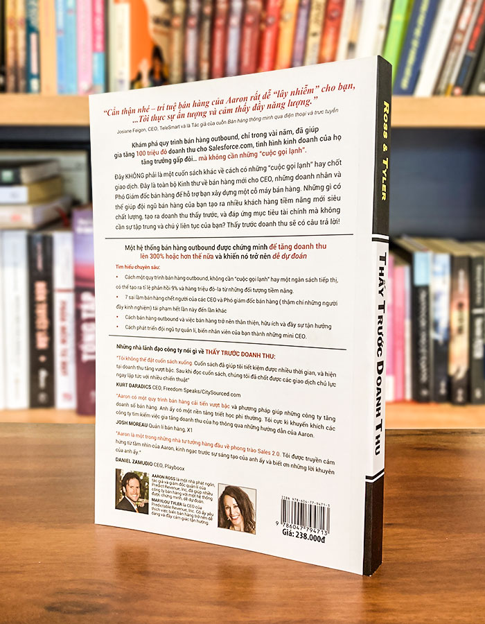 Đây KHÔNG phải là một cuốn sách khác về cách có những “cuộc gọi lạnh” hay chốt giao dịch. Đây là toàn bộ Kinh thư về bán hàng mới cho CEO, những doanh nhân và Phó Giám đốc bán hàng để hỗ trợ bạn xây dựng một cỗ máy bán hàng. Những gì có thể giúp đội ngũ bán hàng của bạn tạo ra nhiều khách hàng tiềm năng mới siêu chất lượng, tạo ra doanh thu thấy trước, và đáp ứng mục tiêu tài chính mà không cần sự tập trung và chú ý liên tục của bạn? Thấy trước doanh thu sẽ có câu trả lời!
