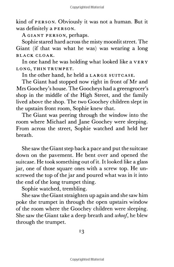 On a dark, silvery moonlit night, Sophie is snatched from her bed by a giant.