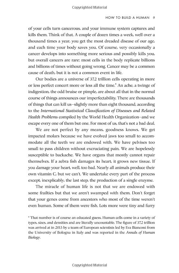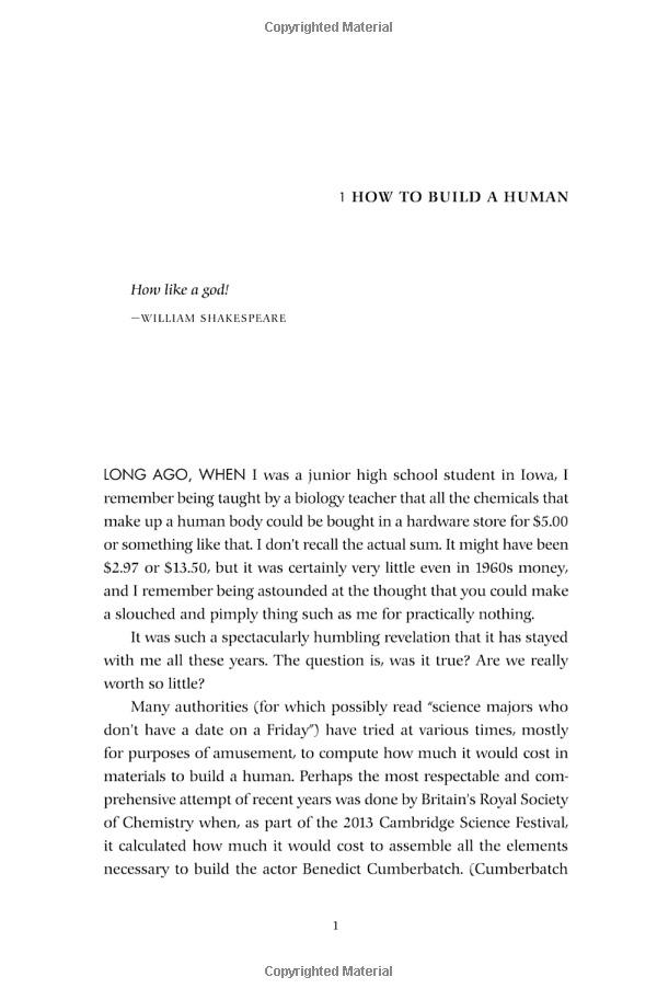 A wonderful successor to A Short History of Nearly Everything, this new book is an instant classic. It will have you marvelling at the form you occupy, and celebrating the genius of your existence, time and time again.