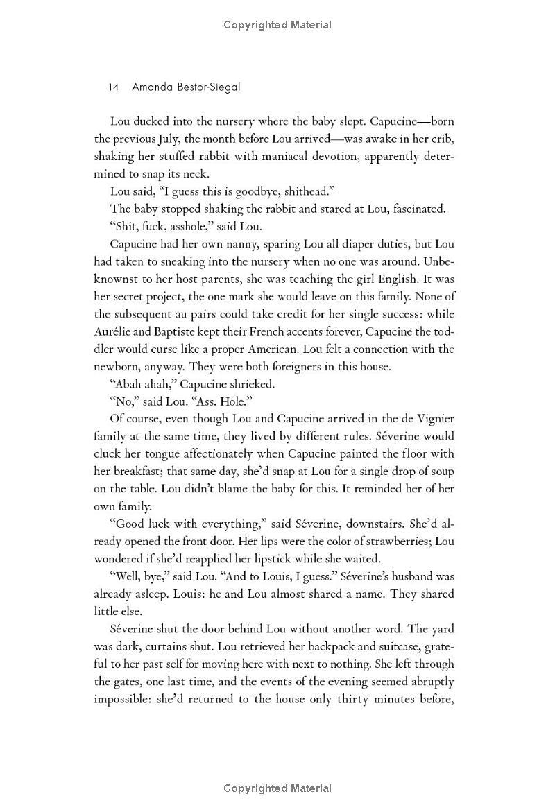 The truth lies with six women: Géraldine, a heartbroken French teacher struggling to support her vulnerable young students; Lou, an incompetent au pair who was recently fired by the family next door; Charlotte, a chilly socialite and reluctant mother; Nathalie, an isolated French teenager desperate for her mother’s attention; Holly, a socially anxious au pair yearning to belong in her adopted country; and finally, Alena, the one accused of the crime, who has gone to great lengths to avoid emotional connection, and now finds herself caught in the turbulent power dynamics of her host family’s household.