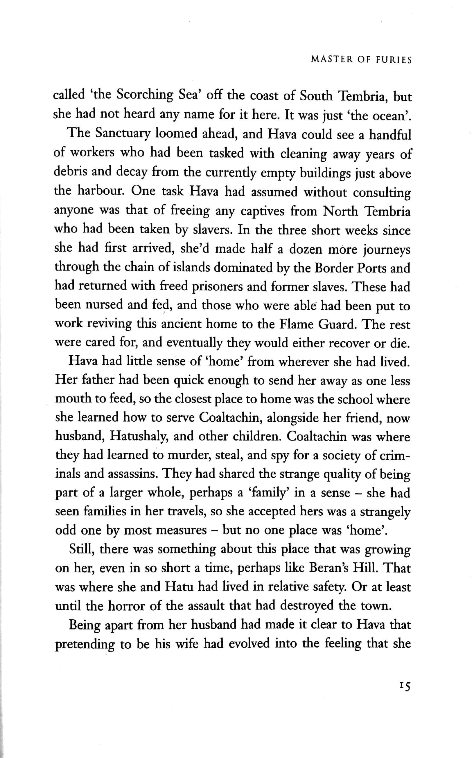 Meanwhile Hava, whose gift for piracy has seen her acquire the treasure ship Borzon's Black Wake and the swift Azhante sailing vessel, Queen of Storms, and won her the name of 'the Sea Demon', is closing in on the whereabouts of those who unleashed the murderous hordes.