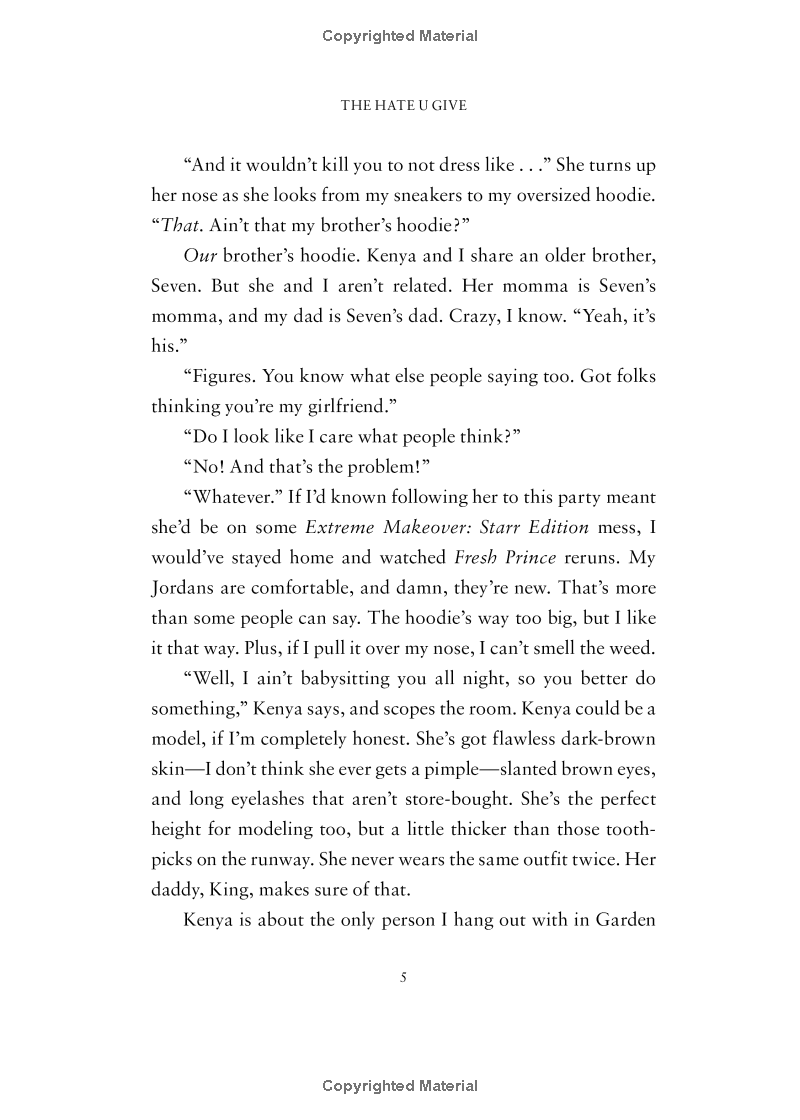 Soon afterward, his death is a national headline. Some are calling him a thug, maybe even a drug dealer and a gangbanger. Protesters are taking to the streets in Khalil’s name. Some cops and the local drug lord try to intimidate Starr and her family. What everyone wants to know is: what really went down that night? And the only person alive who can answer that is Starr.