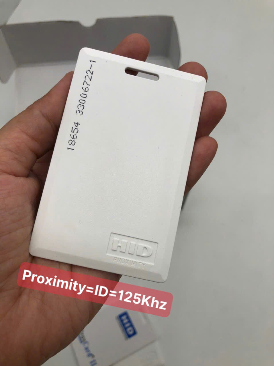 - Thẻ HID Prox II loại dày, có thể in hình bằng công nghệ in phun hoặc in trên tấm thẻ có keo tự dính.