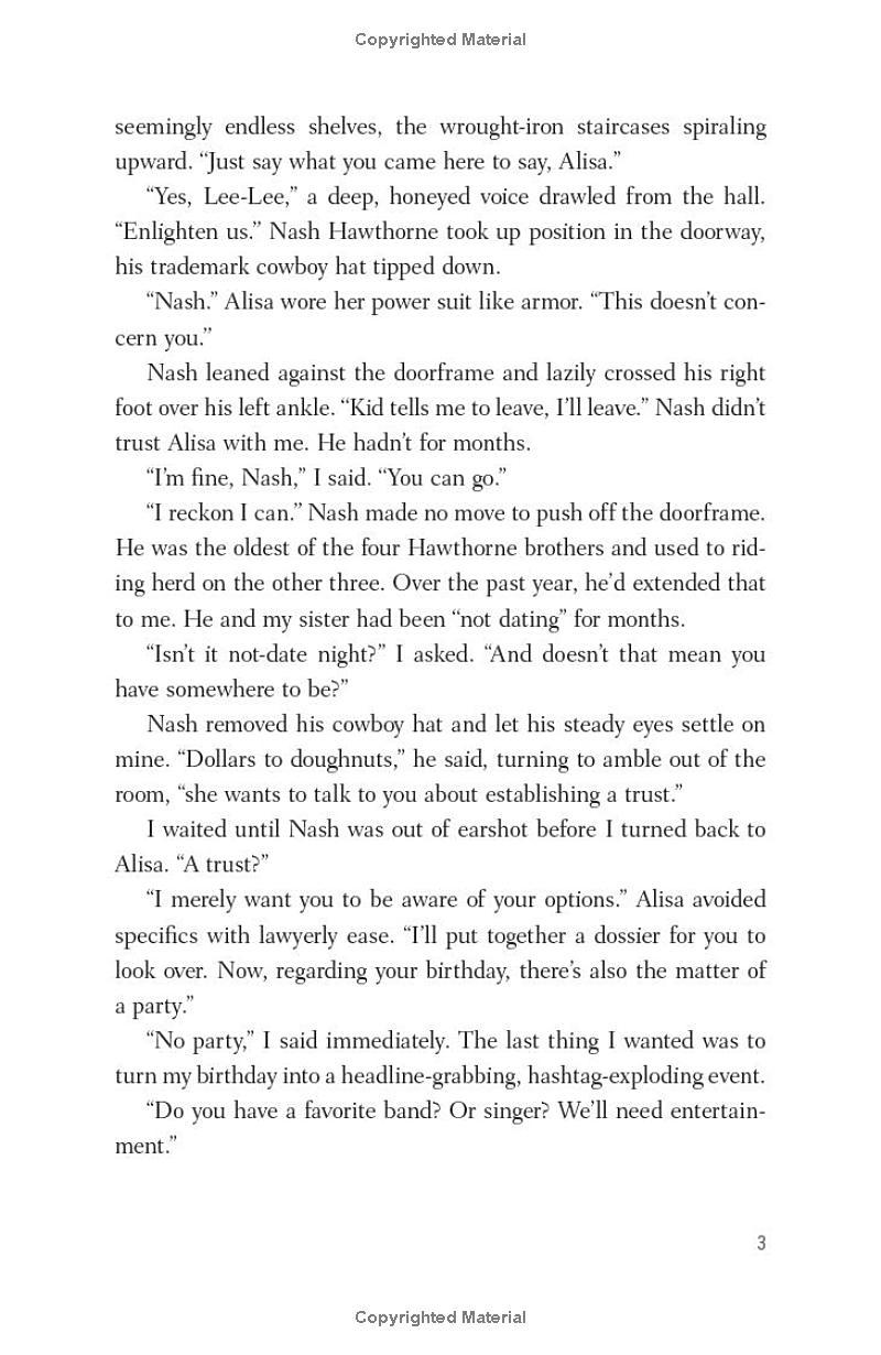 Against all odds, Avery has survived nearly a year of secrets, schemes, and love lost and found at Hawthorne House. She's weeks away from fulfilling the terms of Tobias Hawthorne's will and inheriting his billions.