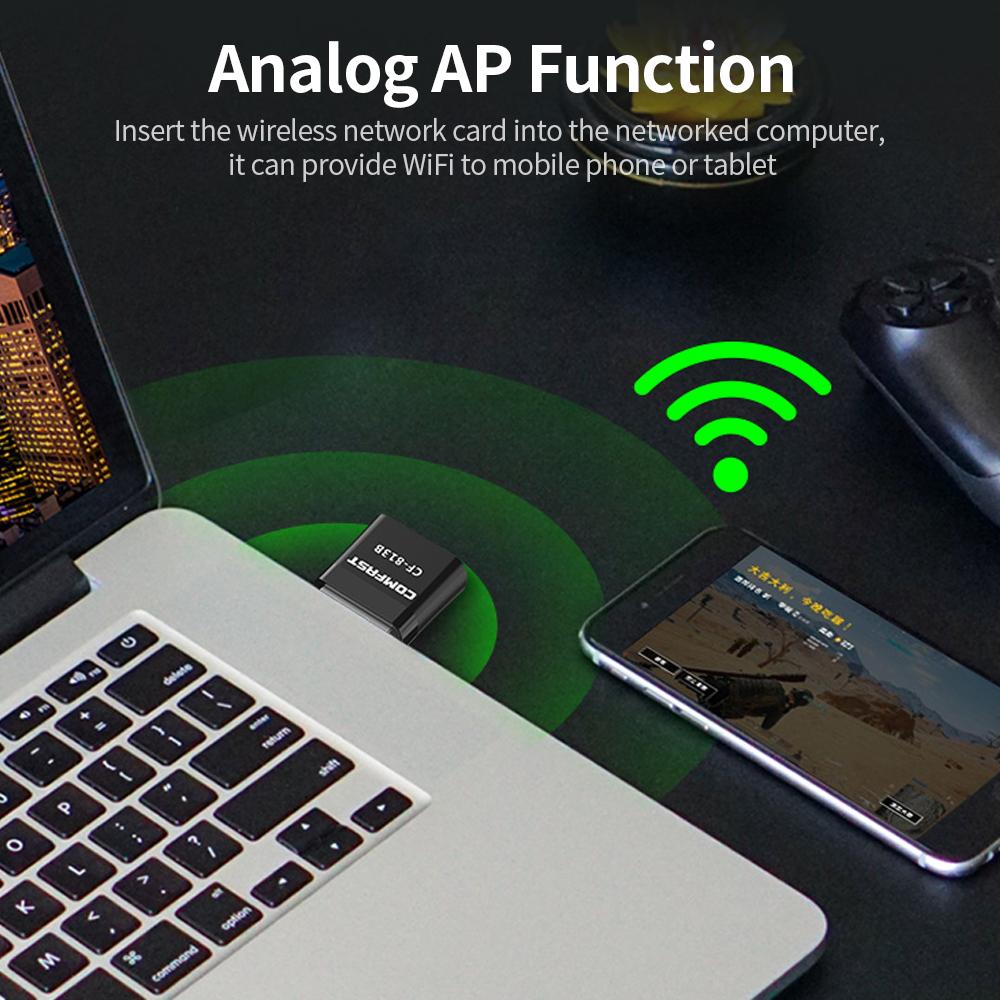 Features: Support 2.4GHz5.8GHz dual frequency, the wireless rate up to 650Mbps, providing smoother video and audio. Add BT function, easy to achieve BT wireless transmission. Analog AP function, insert the wireless network card into the