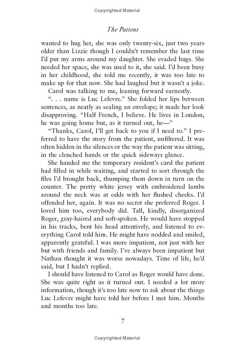 Their attraction is instant, and as Rachel’s sense of ethics wars with newly awakened passion, the affair blinds her to everything else happening around her. A longtime patient appears to be following her every movement, turning up unexpectedly wherever she goes. Her somewhat estranged adult daughter Lizzie is hiding a secret—or at least, hiding it from Rachel. Nathan has grown sour and cold as well—or is that merely Rachel’s guilty conscience weighing on her? But when one of her colleagues winds up murdered and Luc is arrested for the crime, everything Rachel didn’t know about her life explodes into the open—along with her affair with her patient—a disgrace and scandal that will have consequences no one could have predicted.