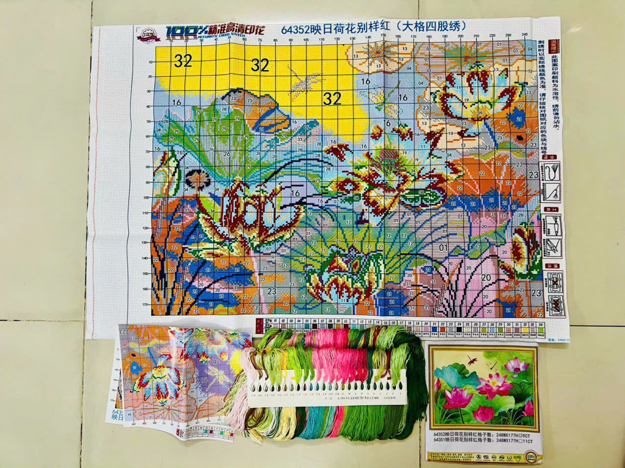 Tên tranh: Tranh thêu kín chữ thập ao sen 64352 Sản phẩm này phôi và chỉ rất đẹp, ký hiệu rõ ràng, tranh 9CT nên nan vải sẽ to hơn và dễ thêu hơn. Thể
