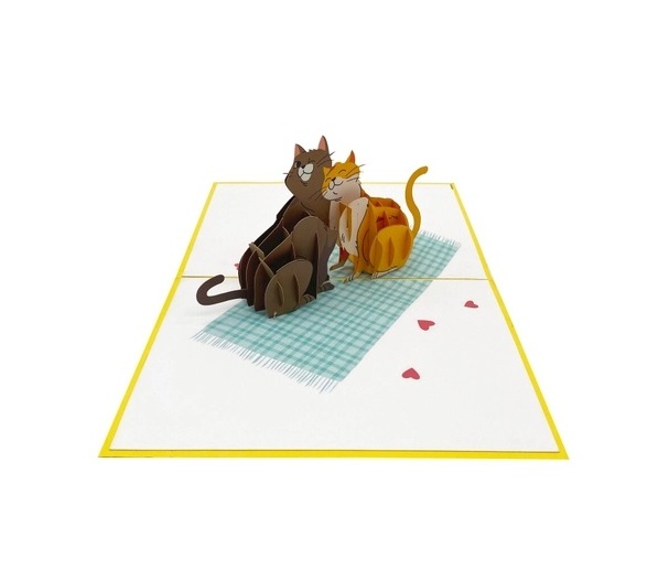 Mang đến sự ngọt ngào và đáng yêu với thiệp 3D Pop Up đôi mèo tình yêu. Khi mở thiệp, hình ảnh hai chú mèo ngồi cạnh nhau đầy tình cảm bật nổi sống động,