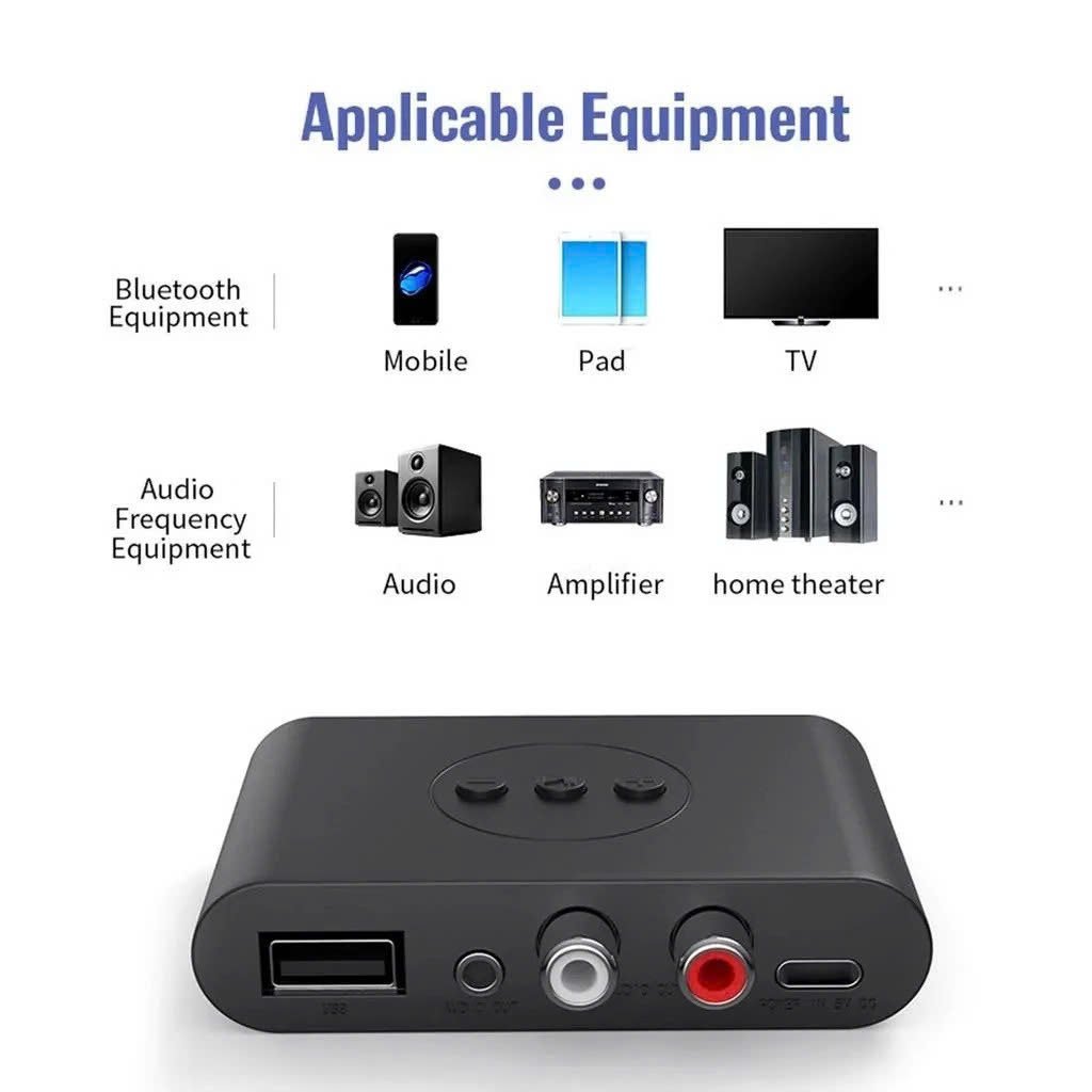 ✨Thiết Bị Nhận Bluetooth, NFC Cho Loa Và Amply Hỗ Trợ Cổng 3.5mm, AV, USB Bộ Thu Phát Bluetooth 5.0 2 in 1 - Chế độ chuyển đổi linh hoạt, Âm Thanh HD, Độ Trễ Thấp, Khoảng Cách Trên 10m Chip thông minh, Cổng kết nối đa dạng RCA AUX USB - Hàng Chính Hãng