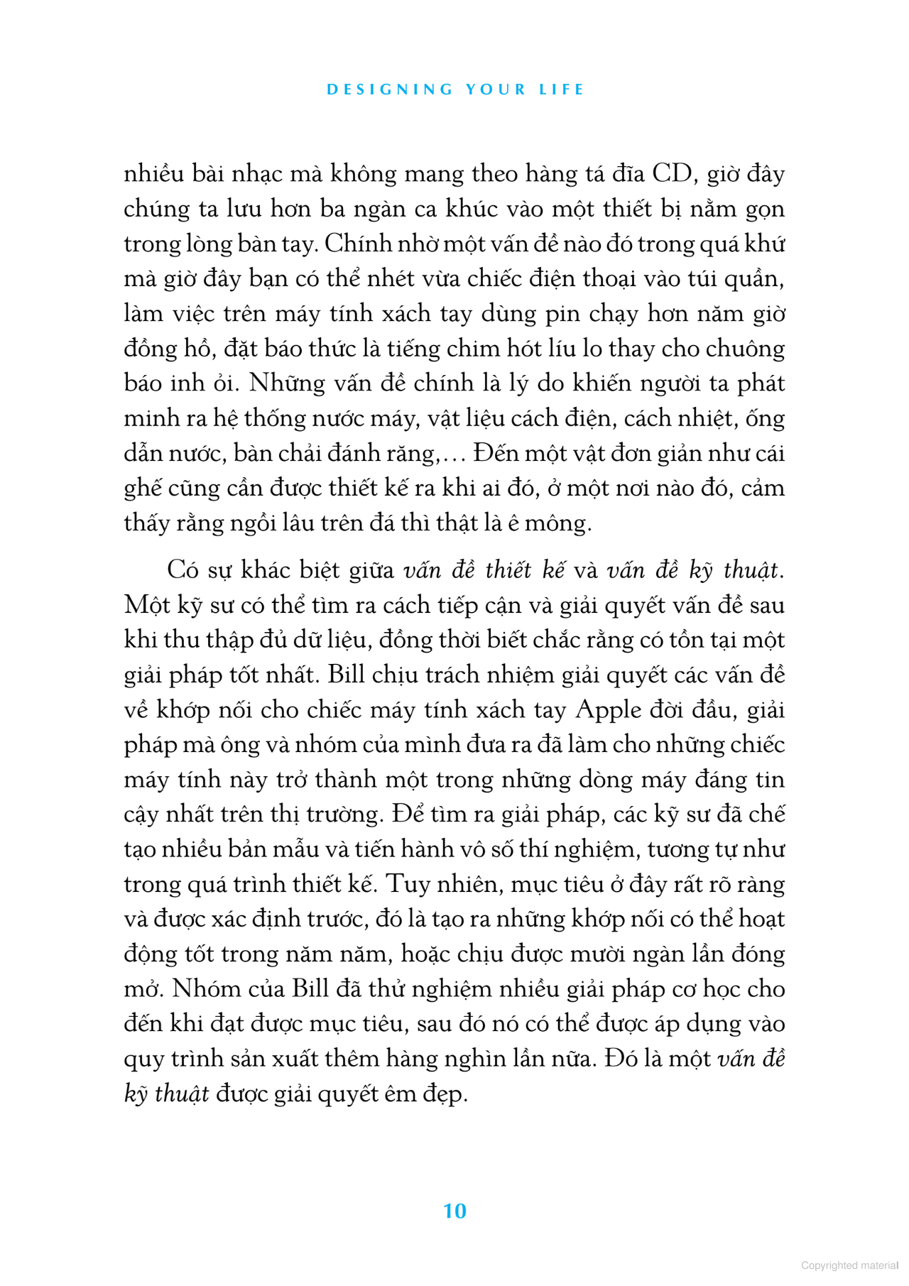Đọc "Thiết kế một cuộc đời đáng sống", bạn đọc sẽ gặp những người trẻ lạc lối, những nhân vật "chưa biết phải làm gì với cuộc đời mình", những con người tài giỏi nhưng gặp khủng hoảng trong sự nghiệp, cuộc số Với mỗi câu chuyện và vấn đề, các tác giả ứng dụng phương pháp tư duy thiết kế để giải quyết, từ đó bạn sẽ học được cách áp dụng kiểu tư duy này vào giải quyết vấn đề của chính mình.
