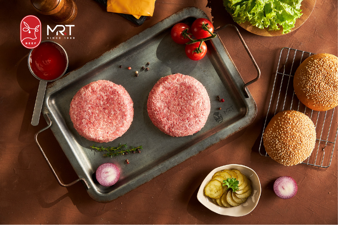 Được xay ra từ thịt lõi nạc vai và mỡ với tỉ lệ là 70 - 30. Được đóng gói một vỉ 2 miếng và 150gr mõi miếng, đay là khối lượng tiêu chuẩn để khi bạn áp chảo sẽ cho ra một chiếc hamburger mọng nước, không quá ngô ngọt lịm vị thịt bò chuẩn Úc.