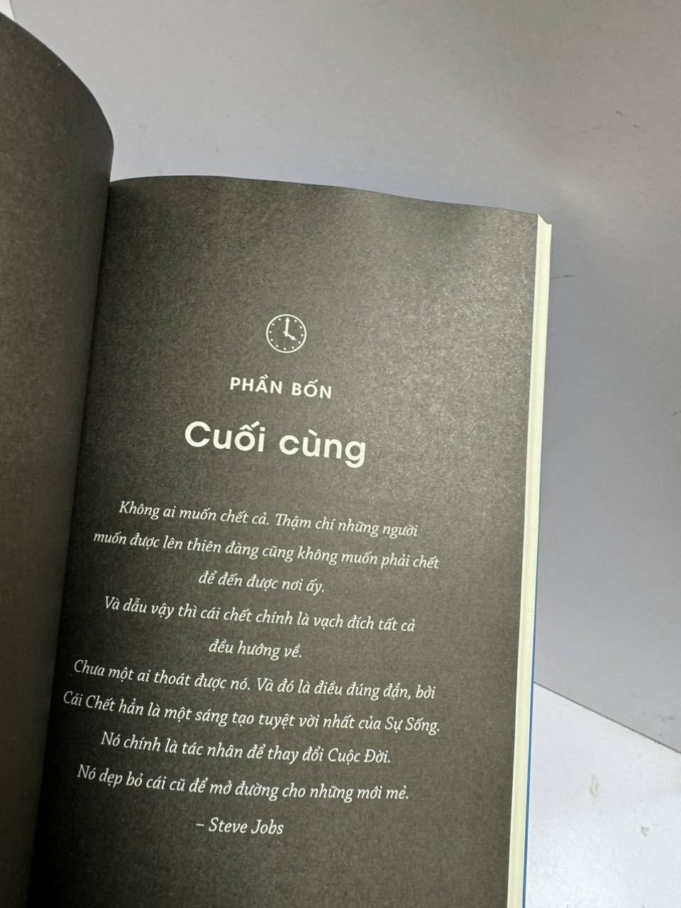 Tác giả cũng gây ấn tượng mạnh khi thay vì "giấu đi" đoạn kết thì ông đẩy tình tiết kết thúc ra làm tựa sách, và mở ra vô vàn cảm xúc mới mẻ cho bạn đọc.