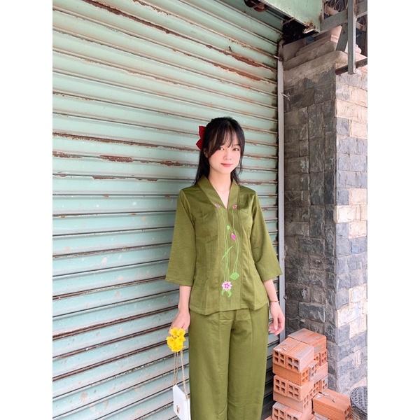 ✨thời trang nữ , áo lam đi chùa, lụa sen cao cấp