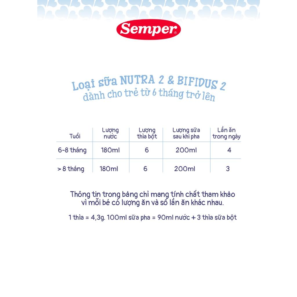 COMBO 2 HỘP SỮA SEMPER NUTRADEFENSE BABY SỐ 2 CHO TRẺ TỪ 6 THÁNG TUỔI TRỞ LÊN TUỔI 400G/HỘP THÔNG TIN SẢN PHẨM - Thương hiệu: Semper - Xuất xứ sản phẩm: Nhập khẩu