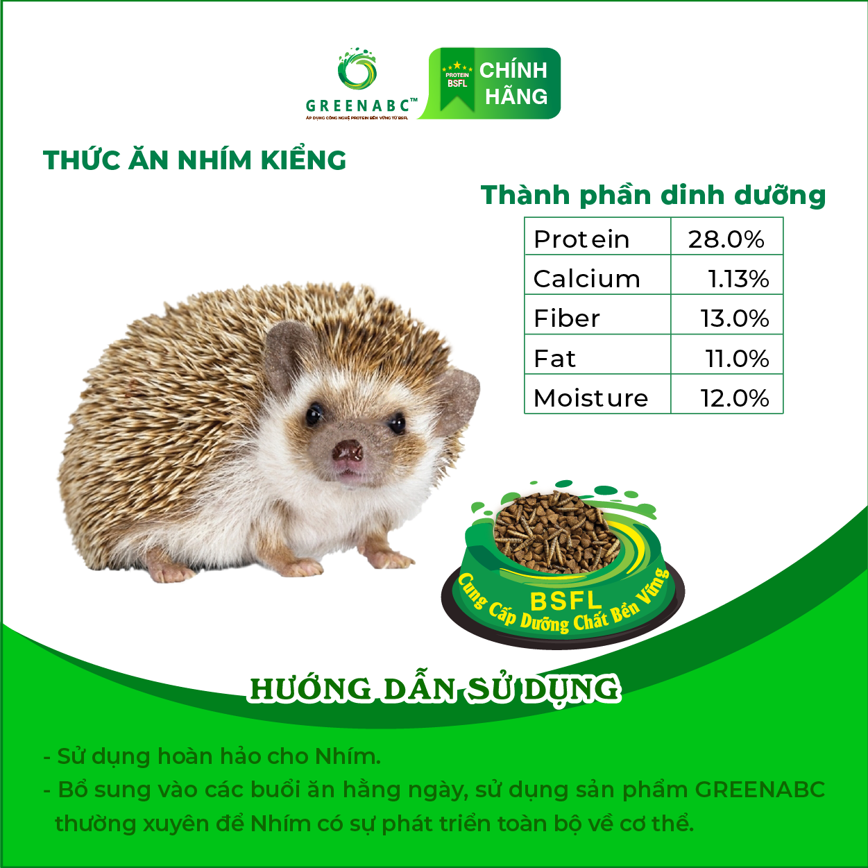 Mua tại TiktokGREENABC - THỨC ĂN NHÍM KIỂNG GREENABC là thức ăn cao cấp dành cho NHÍM KIỂNG. Đặc biệt sản phẩm GREENABC được sản xuất theo phương pháp Áp dụng công nghệ PROTEIN bền vững rất giàu PROTEIN – CANXI – LIPID có trong BSFL, đã được Mỹ (AAFCO) và EU chấp nhận đưa vào công thức cho ngành sản xuất thức ăn cho vật nuôi. Sản phẩm GREENABC cung cấp các giá trị dinh dưỡng bền vững cho thú cưng, giúp cho Nhím Kiểng: