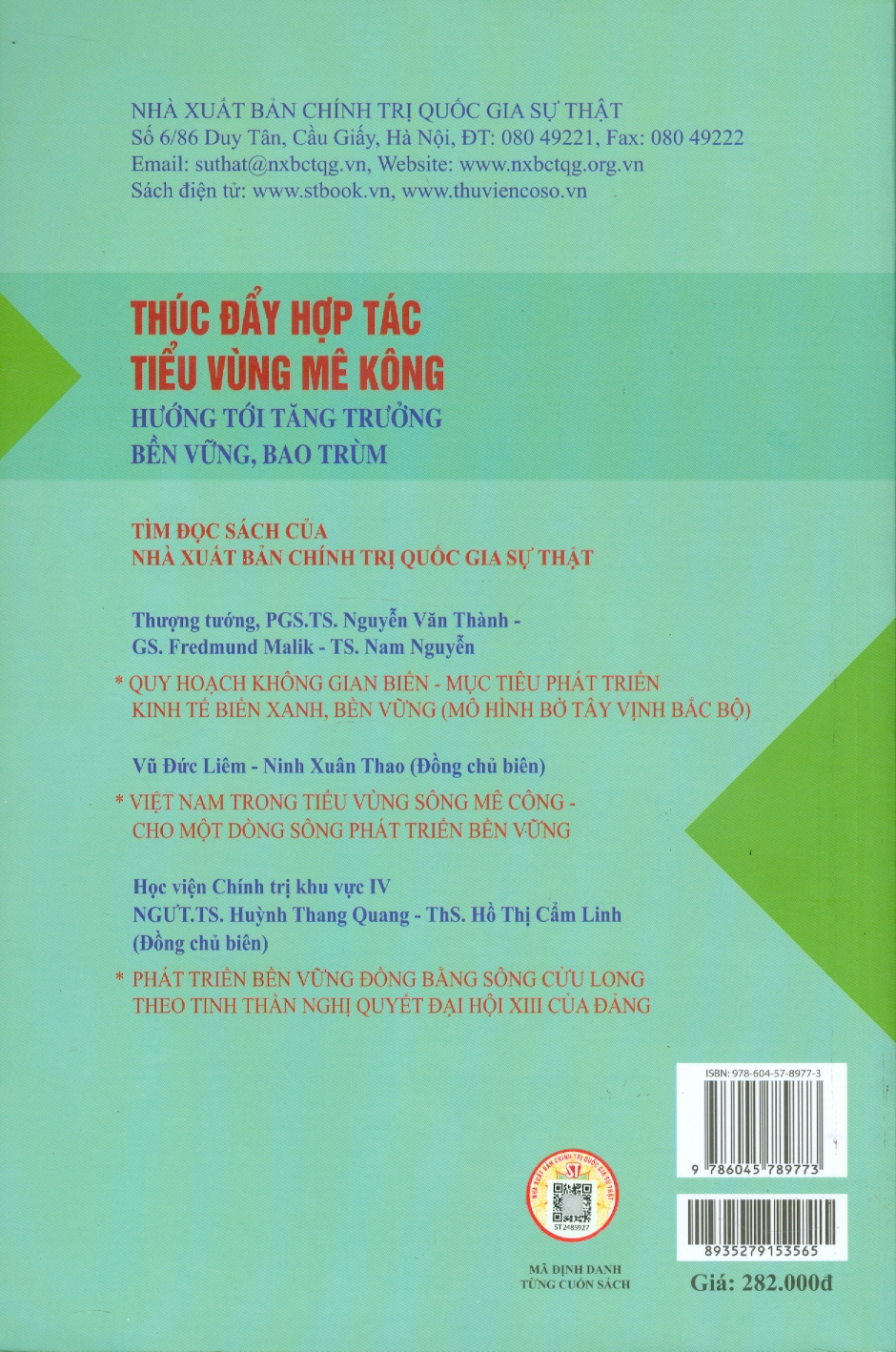 ✨Thúc Đẩy Hợp Tác Tiểu Vùng Mê Kông - Hướng Tới Tăng Trưởng Bền Vững, Bao Trùm (Sách chuyên khảo) - Thượng tướng, PGS.TS. Nguyễn Văn Thành, TS. Bùi Thanh Tuấn đồng chủ biên