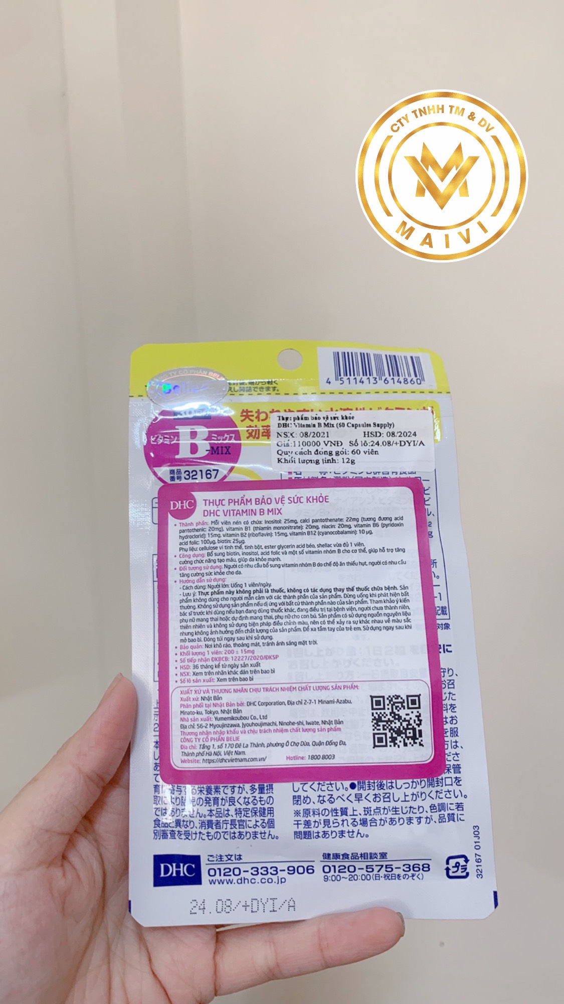Thực phẩm bổ sung 8 loại vitamin B tốt cho sức khỏe và sắc đẹp: Vitamin B1, B2, B6, B12, Inositol, Niacin, Axit pantothenic, Axit folic, Biotin. - Thông tin chung Viên uống DHC Vitamin