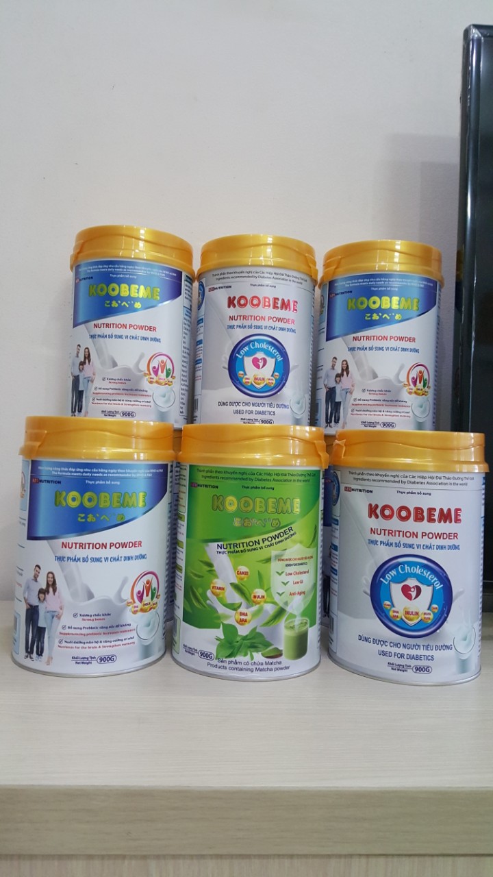 THỰC PHẨM BỔ SUNG VI CHẤT DINH DƯỠNG NUTRITION POWDER Thành phần có chứa MATCHA dùng cho người muốn giảm cân hoặc tiểu đường KOOBEME   Thành phần: Sữa bột tách béo (Skim milk powder), Bột trà Matcha (Greentea Matcha), Isomalt, Non Dairy Creamer, Vitamin A, Vitamin B1, Vitamin B6, Vitamin D3, Vitamin E, Vitamin K1, Vitamin C, Acid - Pantothenic, Biotin, Canxi, Phốtpho, Natri, DHA, ARA, Inulin.   MATCHA có chứa chất chống oxy hóa Polyphenol và EGCG. Giúp giảm căng thẳng mệt mỏi, giảm cholesterol, và điều chỉnh lượng đường trong máu từ đó giúp ngăn ngừa hoặc kiểm soát bệnh tiểu đường rất hiệu quả. INULIN là các prebiotic nuôi dưỡng hệ vi sinh có lợi phát triển, thúc đẩy hấp thu khoáng chất và tăng sức đề kháng. Sự kết hợp của các vitamin A, C, E, vitamin nhóm B, Axit Folic và các khoáng chất Magie, Kẽm giúp tăng cường sức đề kháng, tái tạo tế bào, giảm tình trạng mệt mỏi. Đường hấp thu chậm Isomalt có chỉ số đường huyết thấp (kiểm nghiệm lâm sàn GI<50) không làm đường huyết tăng nhanh sau khi ăn.   MATCHA contains antioxidants Polyphenols and EGCG. Helps reduce stress, reduce cholesterol, and regulate blood sugar levels, thus helping to prevent or control diabetes very effectively. INULIN is prebiotics that nourish beneficial microflora, promote absorption of minerals and increase resistance The combination of vitamins A, C, E, vitamins group B, Axit Folic and the minerals Magnesium, Zinc, enhances the resistance, regenerate new cells, reducing fatigue. ISOMALT sugar slowly absorbed with a low glycemic index (GI clinical testing <50) that does not make rapid increase in blood sugar after eating. Đối tượng sử dụng/ User: Sản phẩm thích hợp cho người tiểu đường, người tiền tiểu đường, người bị cao huyết áp và người có nhu cầu ăn kiêng đường. The product is suitable for diabetics, prediabetes, people with high blood pressure and people wishing to eat less sugar.   Đối tượng sử dụng/ User: Sản phẩm thích hợp cho người tiểu đường, người tiền tiểu đường, người bị cao huyết áp và người có nhu cầu ăn kiêng đường. The product is suitable for diabetics, prediabetes, people with high blood pressure and people wishing to eat less sugar.   Lượng dùng đề nghị/ Recommended dosage Mỗi ngày nên uống từ 2 – 3 ly, và không quá 1200ml trong một ngày. Có thể được dùng như thức ăn bổ sung hoặc thay thế bữa ăn. Sản phẩm này có thể dùng trong thời gian dài. Every day should drink 2-3 cups and no more than 1200ml in a day . Can be used as food supplements or meal replacement. This product can be used for a long time.   Lưu ý quan trọng/ Important notice: