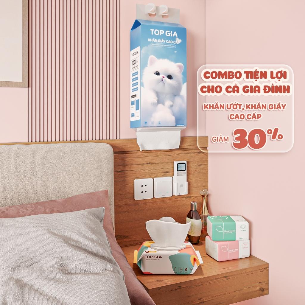 Khăn giấy rút Top Gia 10 bịch GiaGia, giấy vệ sinh treo tường 1000 tờ 4 lớp tặng 3 móc treo