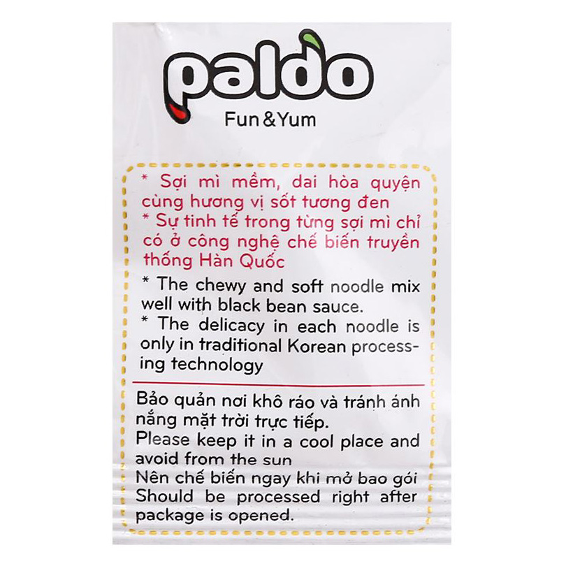 Mua tại TiktokMì Koreno Jjajangmen là 1 sự phá cách mới của Paldo Vina. Kết hợp sợi mì mềm dai hòa quyện với gia vị tương đen, một loại gia vị nhập khẩu từ Hàn Quốc và được làm từ các nguyên liệu tươi ngon nhất, tạo nên hương thơm thật quyến rũ khi thưởng thức. Hướng dẫn nấu: Áp dụng cho 1 gói lẻ 115g