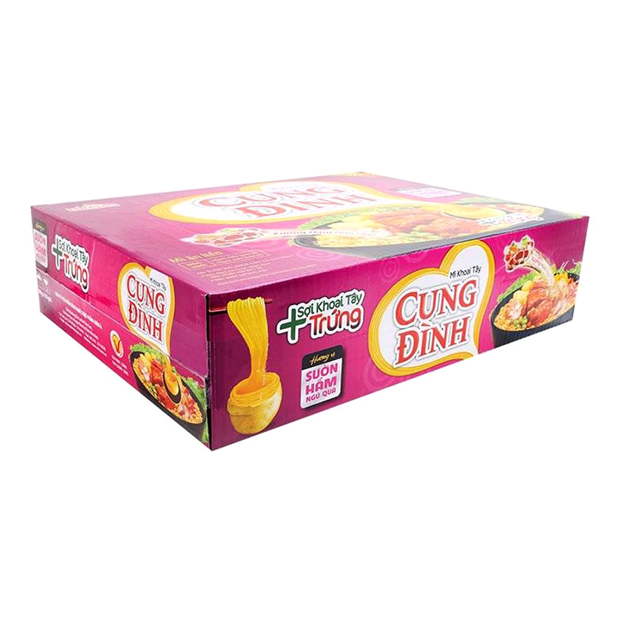 Thùng 30 Gói Mì Khoai Tây Cung Đình Hương Vị Sườn Hầm Ngũ quả với hương vị thơm ngon, kích thích vị giác. Cung cấp nguồn năng lượng dồi dào. Sản phẩm được đóng gói