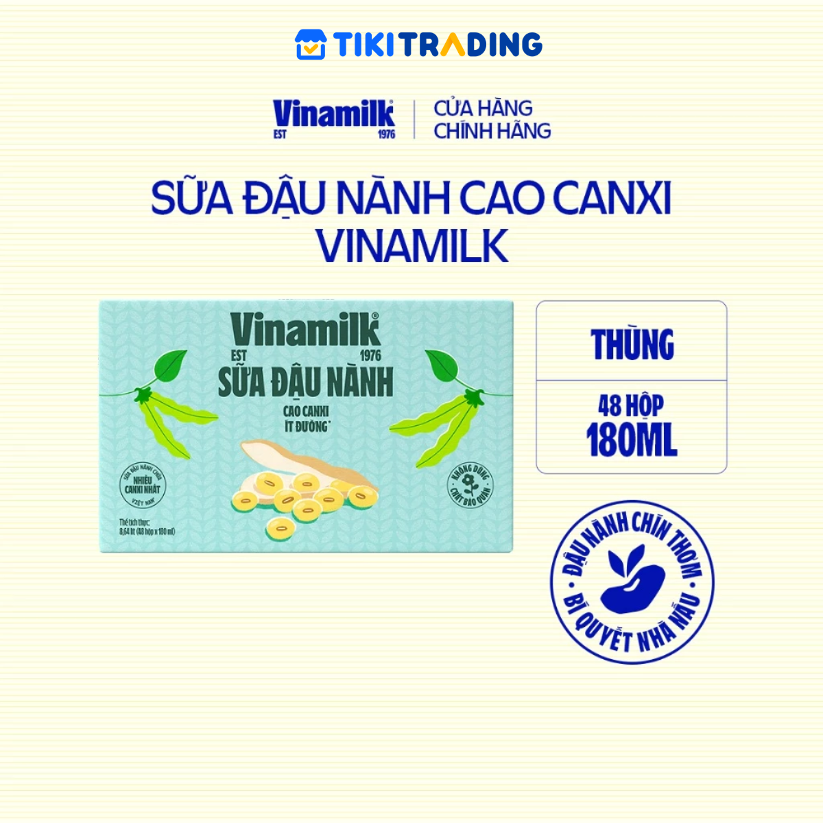 Sữa đậu nành cao canxi Vinamilk - Thùng 48 hộp 180ml Sữa ngon nhà nấu, thơm hương lá dứa nhờ ứng dụng công nghệ độc quyền giúp bảo toàn dinh dưỡng và mùi vị