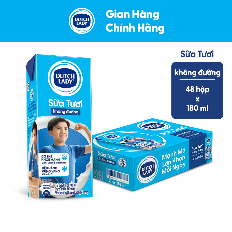 ✨Thùng 48 Hộp Sữa Tươi Tiệt Trùng Dutch Lady Cô Gái Hà Lan Không Đường (48X180ml)