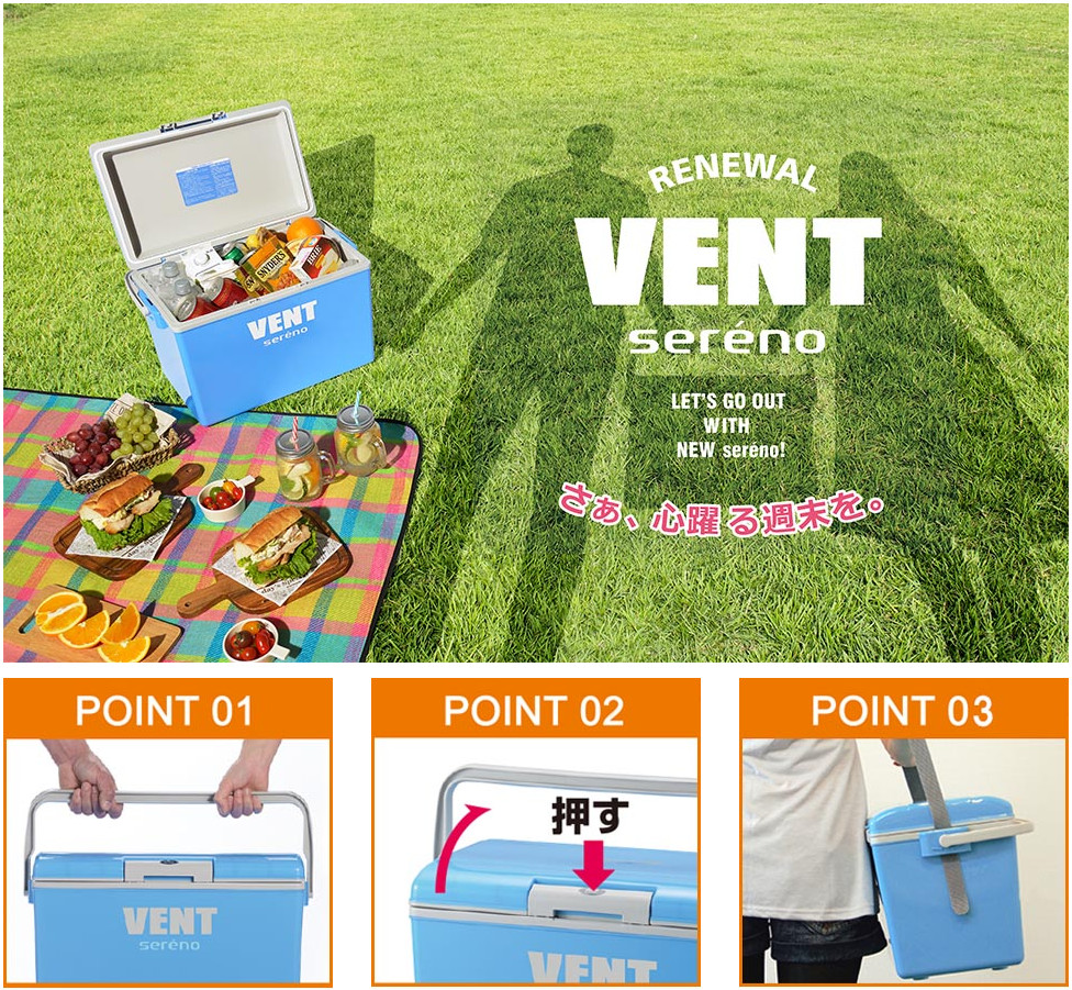 Thùng đá giữ nhiệt đa năng Vent Sereno 50L, tay cầm thu~kéo gọn nhẹ bằng nhôm chống gỉ sét cho phép di chuyển dễ dàng - nội địa Nhật Bản * Chất liệu: Nắp /thân /tay