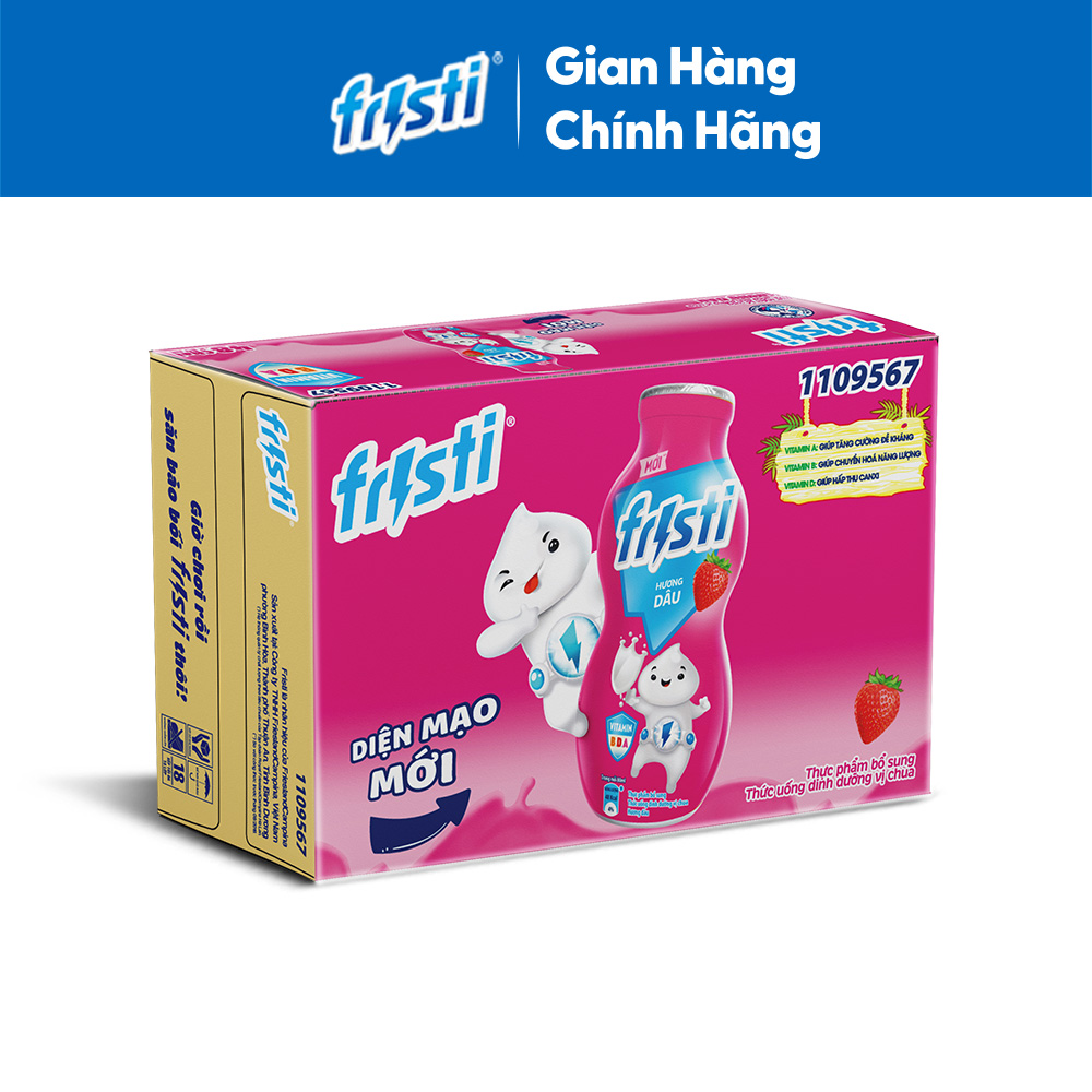 Mua tại Tiktok- Sữa Chua Uống Tiệt Trùng Fristi Hương Dâu với các dưỡng chất từ sữa, vitamin A, B, D và khoáng chất là nguồn dinh dưỡng thiết yếu cho sự phát triển toàn diện của các anh hùng nhí, giúp bé yêu thỏa sức cho trí tưởng tượng bay xa.
