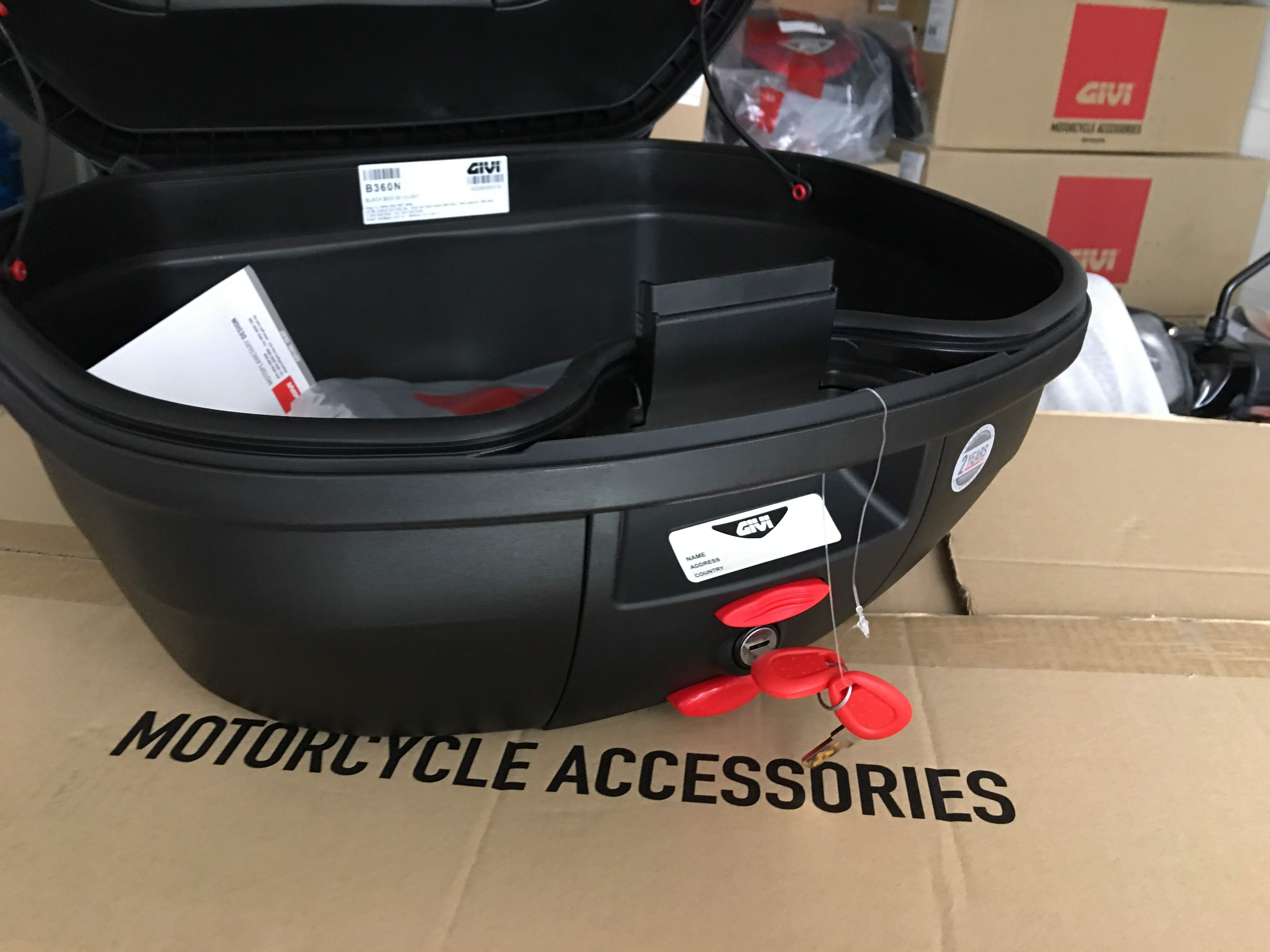 Mua tại TiktokThùng givi B360N 36 lít, thiết kế dạng vỏ sò chắc chắn, nhựa dày 2 lớp, nắp thùng chạy vân Cacbon xịn xò, roăn cao su dày, to bản. Khoá trong tiện lợi và an toàn, dung tích 36 lít đựng dc 2 nón bảo hiểm lớn và vật dụng cá nhân, thích hợp đi trong tp và những chuyến đi xa Bộ thùng bao gồm: thùng B360N mới, đế nhựa Mp70N (đế lớn), bộ ốc vít chống rung, hướng dẫn sử dụng. Ngoài ra còn có các loại baga Givi cho các dòng xe Yamaha, Suzuki, Honda,,, Bao lắp đặt