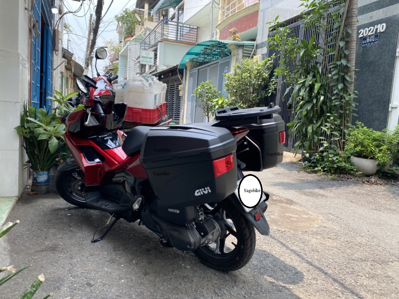 Combo trọn bộ thùng xe lắp cho #Honda #Airblade: thùng hông givi #E22N kèm baga cặp hông #SBL2000 #SBLuniversal, baga #SRAirblade ốc gắnh. Cặp thùng hông E22N thùng nắp đen, có miếng nhựa đỏ phản quang vang, phiên bản không có đèn xi nhan.