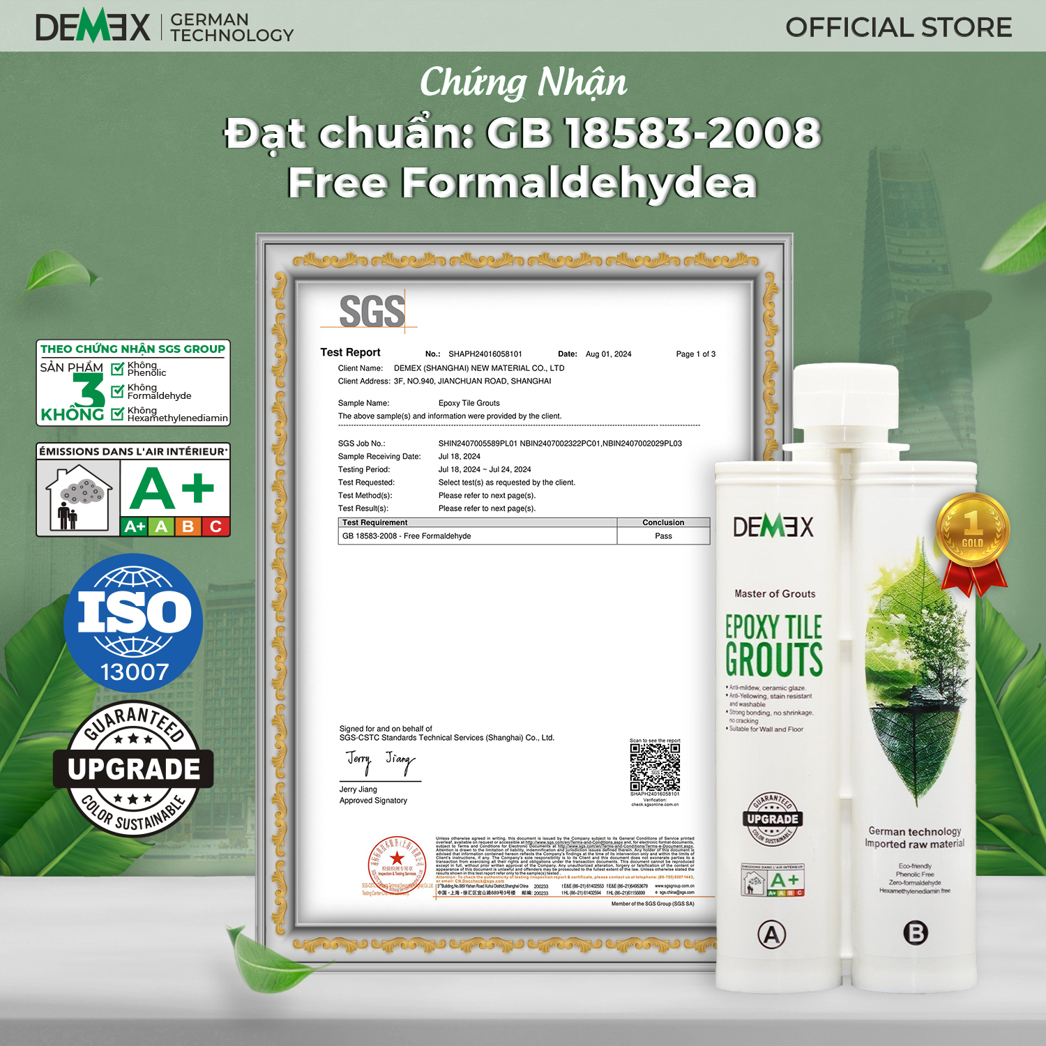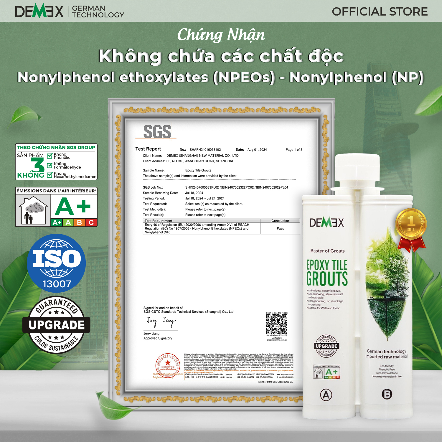 Keo Chà Ron DEMEX được sử dụng trong công trình và nhà ở, là loại keo epoxy hai thành phần dùng để trám khe nối gạch hay các khe hở trong xây dựng. Keo Chà Ron không chứa 3 chất hóa học gây ung thư, bảo vệ môi trường. Đạt chứng chỉ A+ của Pháp.   SẢN PHẨM KEO CHÀ RON DEMEX 3 KHÔNG DUY NHẤT TẠI VIỆT NAM - KHÔNG Phenolic – Hoàn toàn không chứa các chất gây kích ứng da, mắt và đường hô hấp, bảo vệ sức khỏe toàn diện. - KHÔNG Formaldehyde – Đảm bảo không gây ô nhiễm không khí, giảm thiểu nguy cơ ung thư và ảnh hưởng xấu đến khả năng sinh sản nam giới. - KHÔNG Hexamethylenediamine – Ngăn ngừa các phản ứng dị ứng và bảo vệ hệ hô hấp khỏi các tác động tiêu cực.   Thông tin sản phẩm: - Dung tích: 400gr - Màu sắc: 17 màu - Diện tích thi công: Khoảng 23m đường ron mạch    Công dụng sản phẩm: - Keo chà ron DEMEX dùng để chít mạch khi ốp lát các loại gạch Ceramic, gạch sứ porcelain. - Áp dụng cho ốp tường và lát sàn, keo chà ron còn có thể dùng để chít các mạch xung quanh bếp, bồn cầu, lavabo, bồn tắm, tường.   Hướng dẫn sử dụng:   Để đạt hiệu quả tốt nhất, quý khách cần sử dụng kèm bộ dụng cụ keo chít mạch chuyên dụng (xem trong phần sản phẩm của DEMEX).  Chất lượng cam kết: DEMEX Việt Nam cam kết tất cả sản phẩm đều đạt chuẩn chất lượng. Trong trường hợp sản phẩm có lỗi, xin vui lòng liên hệ qua chatbox để được đổi trả sản phẩm và hoàn tiền nếu không đúng cam kết. #KeoChaRon #KeoChitMach #KeoChongTham #Keo_ab #KeoEpoxy #Keo2ThanhPhan #KeoChitMachSanNha #keo_ab_2_thành_phần #keo_chà_ron_chống_thấm #KeoChaRonMau #KeoChaRonGiaRe #KeoChaRonGach #KeoChaRonChongNamMoc #KeoChaRonCaoCap #Demex