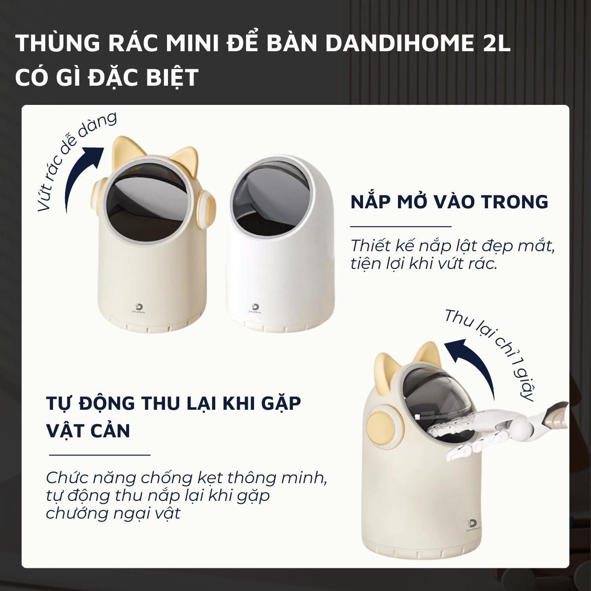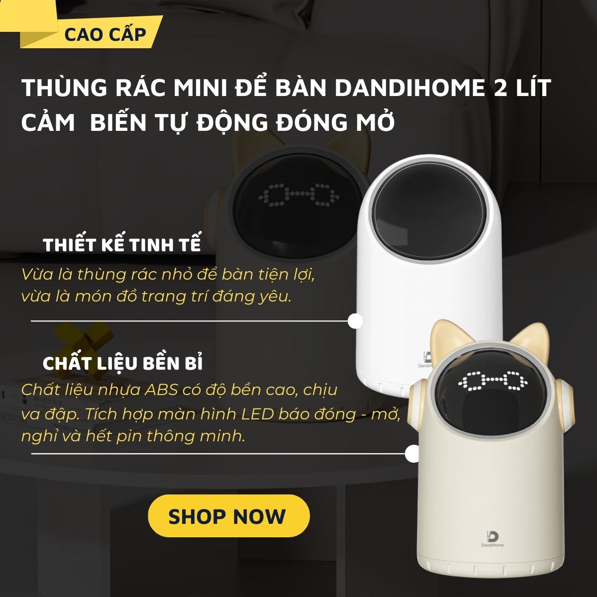 Thùng rác để bàn 2L DandiHome cảm biến tự động - Bảo hành 12 tháng
