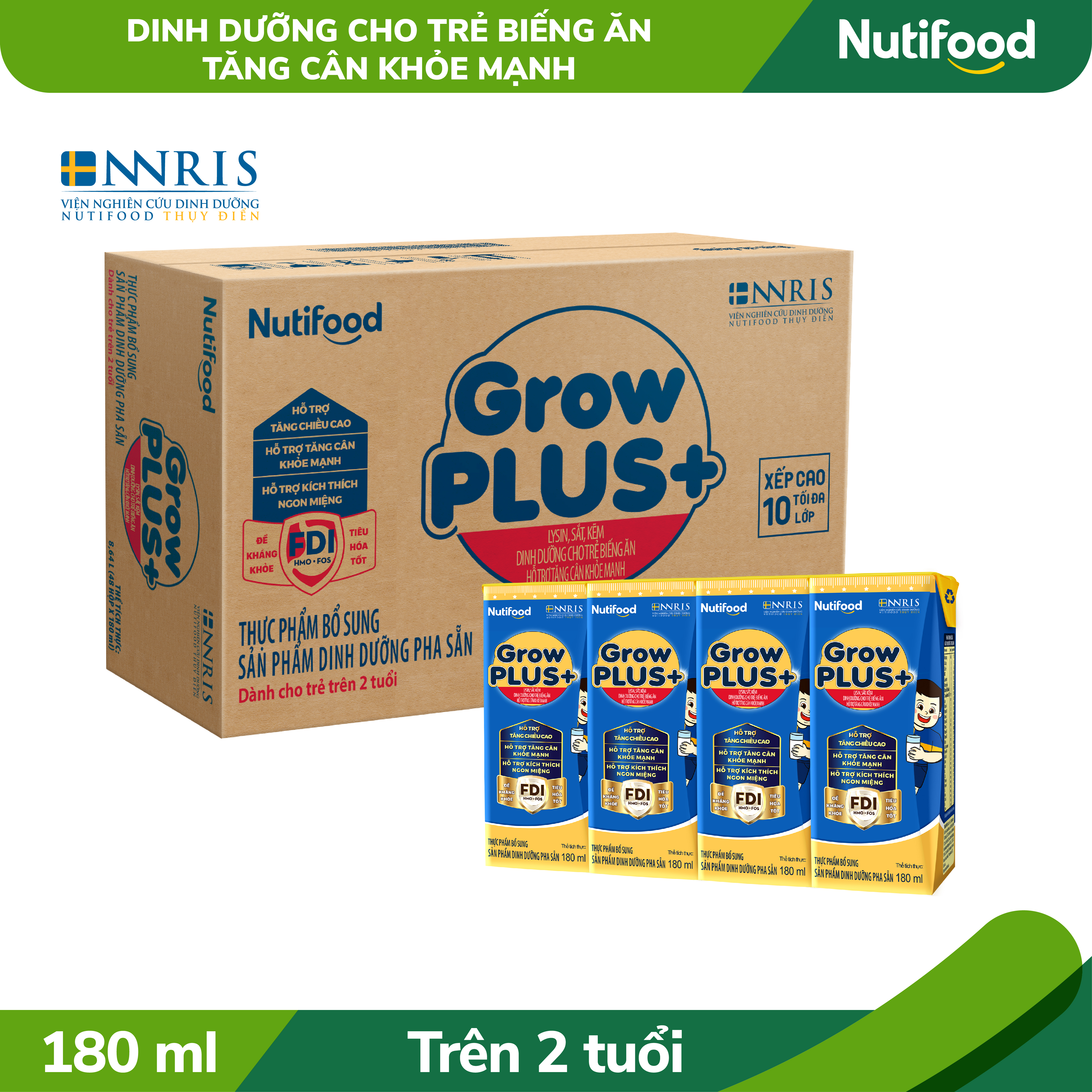 Mua tại TiktokThùng 48 hộp x 180ml Sữa bột pha sẵn Nutifood Sweden GrowPLUS+ Tiêu Hóa (Xanh Nhạt) 1+ - Tiêu hóa khỏe, tăng cân Nutifood GrowPLUS+ với công thức được phát triển bởi Nutifood Thụy