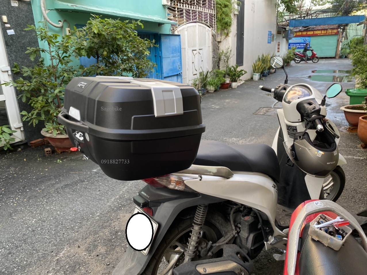 Thùng B45NM gắn trên xe SH 125i, thùng cao cấp đủ phụ kiện, gắn trực tiếp lên cảng xe.
