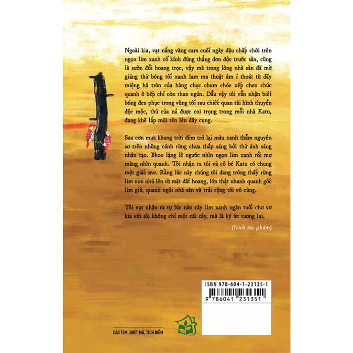 "Sau cơn mưa khung trời đêm trở lại màu xanh thẫm nguyên sơ trên những cánh rừng chưa thắp sáng bởi thứ ánh sáng nhân tạo. Bhoo lặng lẽ ngước nhìn ngọn lim xanh rồi mơ màng nhìn quanh. Tôi nhận ra tôi và cô bé Katu có chung một giấc mơ. Rằng lúc này chúng tôi đang trông thấy rừng lim non nhú lên từ mặt đất hoang, lớn thật nhanh quanh gốc lim già, quanh ngôi nhà sàn và trải rộng tới vô cùng".