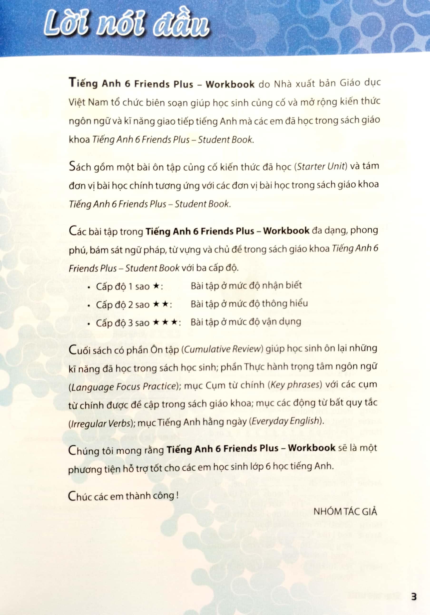 Chúng tôi mong rằng Tiếng Anh 6 Friends Plus – Workbook sẽ là một phương tiện hỗ trợ tốt cho các em học sinh lớp 6 học tiếng Anh.