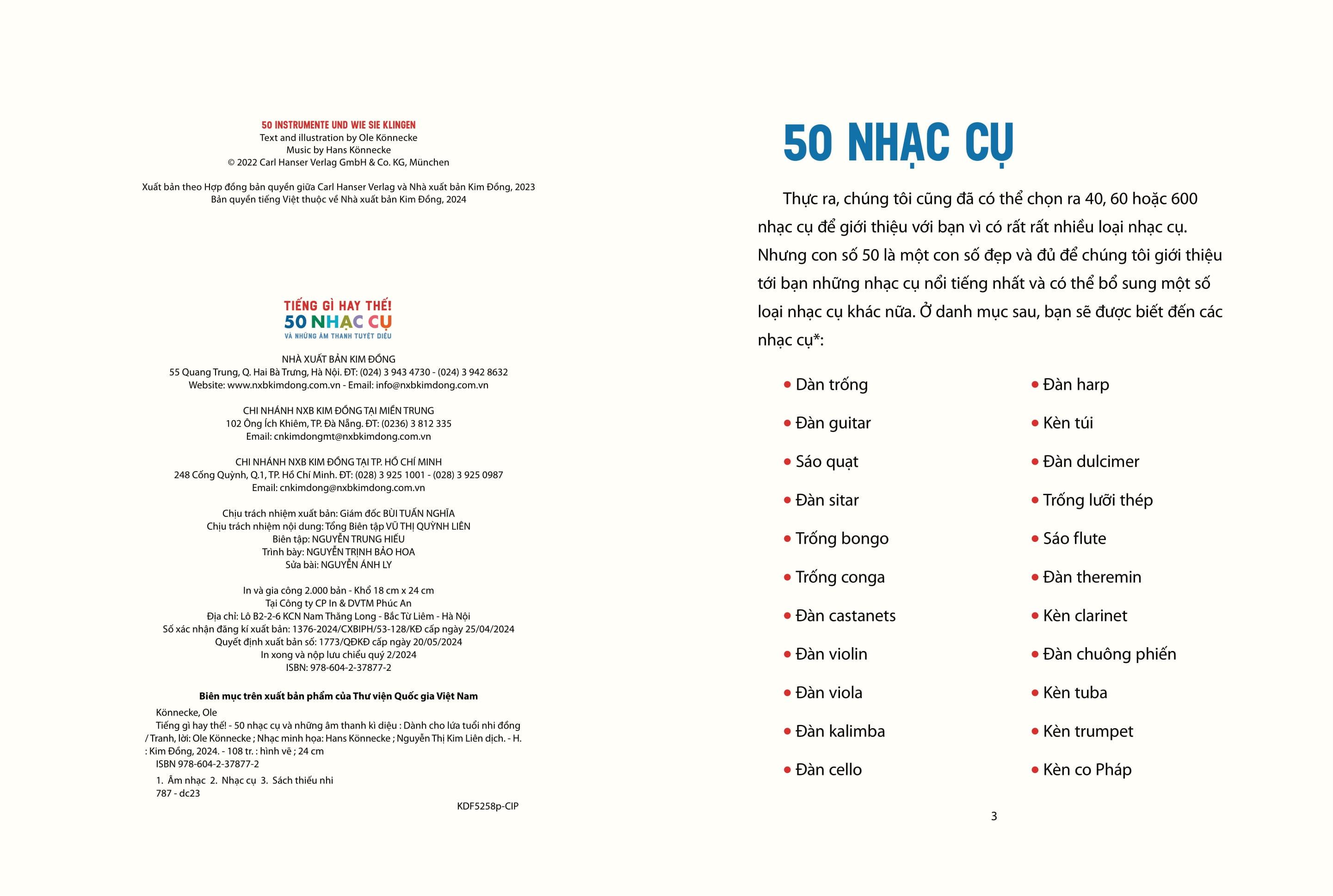 Tiếng Gì Hay Thế! - 50 Nhạc Cụ Và Những Âm Thanh Kì Diệu Khi ngắm nhìn, ta thấy các nhạc cụ rất đẹp, nhưng chúng sẽ còn đẹp hơn nữa khi ta được thưởng thức những âm thanh tuyệt diệu từ các nhạc cụ phát ra. Trong cuốn sách này, bạn đọc sẽ được khám phá hơn 50 nhạc cụ nổi tiếng thế giới thông qua những mô tả ngắn gọn, tranh vẽ ngộ nghĩnh và lắng nghe những bản nhạc do chính tác giả soạn và sản xuất để minh họa cho từng nhạc cụ. Chắc chắn đây sẽ là một bước khởi đầu vô cùng lí thú cho các bạn nhỏ (và cả người lớn) bước vào thế giới âm nhạc đầy màu sắc.