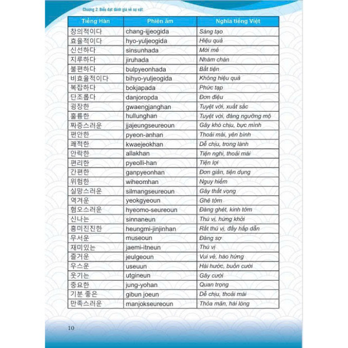 Tiếng Hàn Tổng Hợp Dành Cho Người Việt Nam - Sơ Cấp 1 Trong những năm gần đây, nhu cầu học tiếng Hàn và tìm hiểu về văn hóa Hàn Quốc đang có xu hướng tăng lên. Người học tiếng Hàn rất mong muốn có được một bộ giáo trình chuẩn, được biên soạn một cách tỉ mỉ và hữu ích nhất. Giáo trình tiếng Hàn tổng hợp lần đầu tiên được trao bản quyền chính thức tại Việt Nam Hiểu được điều đó, ngày 4-7, Đại diện chính phủ Hàn Quốc, ngài Woo Hyeong Min – Trưởng đại diện Văn phòng Quỹ giao lưu Quốc tế HQ tại Việt Nam cùng GS.TS.NGƯT Mai Ngọc Chừ – Chủ tịch Hội Nghiên cứu khoa học về Hàn Quốc của Việt Nam (KRAV) đã trao quyết định cho phép Công ty Cổ phần sách MCBooks của Việt Nam được xuất bản cuốn sách này tại thị trường Việt Nam. Và đây chính là bộ giáo trình tiếng Hàn tổng hợp đầu tiên có bản quyền chính thức có mặt tại Việt Nam. Cũng theo ông Woo Hyeong Min, Thực tế đây là bộ giáo trình chính thống mà tất cả người học tiếng Hàn tại Việt Nam cần sử dụng. Tuy nhiên nhiều năm qua bộ sách đến tay người dùng đều là sách lậu nên chưa đạt được kết quả mà chính phủ Hàn muốn mang tới Việt Nam. Do đó Chính phủ Hàn Quốc đã quyết định tìm 1 đơn vị xuất bản uy tín của Việt Nam để giúp họ mang đến cho người học những cuốn sách tiếng Hàn chất lượng tốt với giá cả hợp lý. Bộ giáo trình được Hội nghiên cứu khoa học Hàn Quốc của Việt Nam biên soạn và hiệu đính. Bộ giáo trình sẽ giúp nâng cao hiệu quả trong việc sử dụng ngôn ngữ Hàn sau tiếng mẹ đẻ và tiếng Anh, là nền tảng giúp người lao động Việt Nam nhận được những vị trí làm việc cao trong doanh nghiệp Hàn Quốc. Đây cũng là cách để thúc đẩy quan hệ hợp tác về văn hoá và giáo dục giữa hai nước trong thời gian tới. Giới thiệu cuốn Giáo trình tiếng Hàn tổng hợp dành cho người Việt Nam – Sơ cấp 1 Giáo trình tiếng Hàn tổng hợp dành cho người Việt Nam – Sơ cấp 1 được biên soạn dành cho người Việt Nam muốn học tiếng Hàn ở trình độ sơ cấp. Sách được biên soạn nhằm hướng tới việc sử dụng được trong các tiết học tiếng Hàn tại giảng đường đại học nên mỗi bài học được chia thành nhiều phần như: Lý thuyết cơ bản gồm từ vựng và cấu trúc ngữ pháp; phần luyện tập theo 4 kỹ năng giao tiếp như: Nghe – Nói – Đọc – Viết, phần luyện phát âm, phần tìm hiểu văn hóa… Các chủ đề trong sách được sắp xếp một cách có hệ thống và liên quan chặt chẽ với nhau. Giáo trình tiếng Hàn tổng hợp được biên soạn kèm theo một cuốn sách bài tập hỗ trợ giúp người học ôn tập kỹ hơn và có thể luyện tập nâng cao trong những trường hợp cần thiết. Nội dung trong Giáo trình tiếng Hàn tổng hợp – Sơ cấp 1 2 cuốn sách trong bộ Sơ cấp được xây dựng với 30 bài khóa và bảng chữ cái. Trong đó quyển 1 gồm phần bảng chữ cái và 15 bài đầu. Học hết quyển 1, bạn sẽ học đến quyển sơ cấp 2 với 15 bài còn lại. Cấu trúc tổng thể của giáo trình được xây dựng theo các chủ đề; mỗi chủ đề được liên kết thống nhất với một hệ thống các từ vựng và cấu trúc ngữ pháp cơ bản, bài tập ứng dụng, kỹ năng và tìm hiểu văn hóa. Trong mỗi bài học, nội dung học được chia thành các phần như: luyện từ vựng, luyện ngữ pháp cơ bản, luyện tập kỹ năng nghe – nói – đọc – viết, luyện phát âm, tìm hiểu văn hóa của đất nước Hàn Quốc xinh đẹp. Và kết thúc mỗi bài đều có thêm bảng từ mới xuất hiện trong bài học. Phần cuối của sách, các tác giả đưa ra hệ thống từ mới được sắp xếp theo thứ tự của bảng chữ cái. Đây là những từ không xuất hiện trong phần ngữ pháp, từ vựng cơ bản; nhưng lại xuất hiện nhiều ở phần luyện tập của từng bài.
