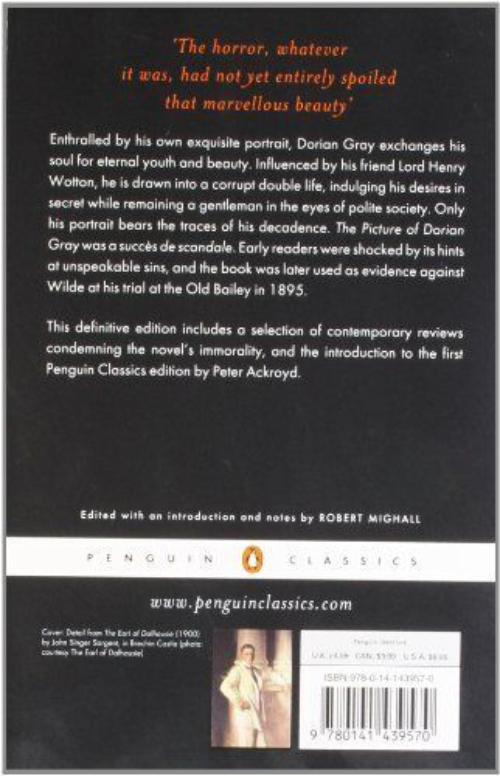 Cuốn tiểu thuyết hấp dẫn về sự suy đồi và tội lỗi của Oscar Wilde đã thành công khi xuất bản. Phim kể về Dorian Gray, người bị mê hoặc bởi bức chân dung tinh xảo của chính mình, đã trao đổi linh hồn của mình để lấy vẻ đẹp và tuổi trẻ vĩnh cửu. Bị ảnh hưởng bởi người bạn Lord Henry Wotton, anh ta bị cuốn vào cuộc sống hai mặt thối nát, thỏa mãn những ham muốn của mình trong bí mật trong khi vẫn là một quý ông trong mắt xã hội lịch sự. Chỉ có bức chân dung của anh ta mang dấu vết của sự sa đọa của anh ta. Phiên bản cuối cùng này bao gồm tuyển tập các bài phê bình đương thời lên án sự vô đạo đức của cuốn tiểu thuyết.