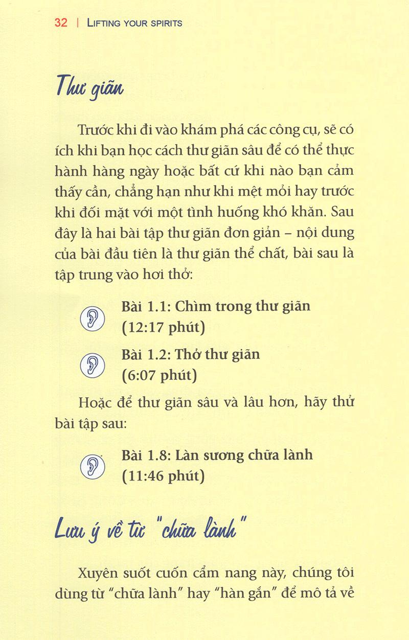 Tìm Lại Sức Mạnh Tinh Thần (Tái Bản) Sách giới thiệu bảy công cụ giúp phát triển sức mạnh nội tâm và tăng cường sức khoẻ ở mọi cấp độ. Sách có kèm đĩa ghi âm những bài hướng dẫn thư giãn và thiền định, những bài thực hành ngắn trong ngày và những suy nghĩ tích cực để vực dậy tinh thần bạn