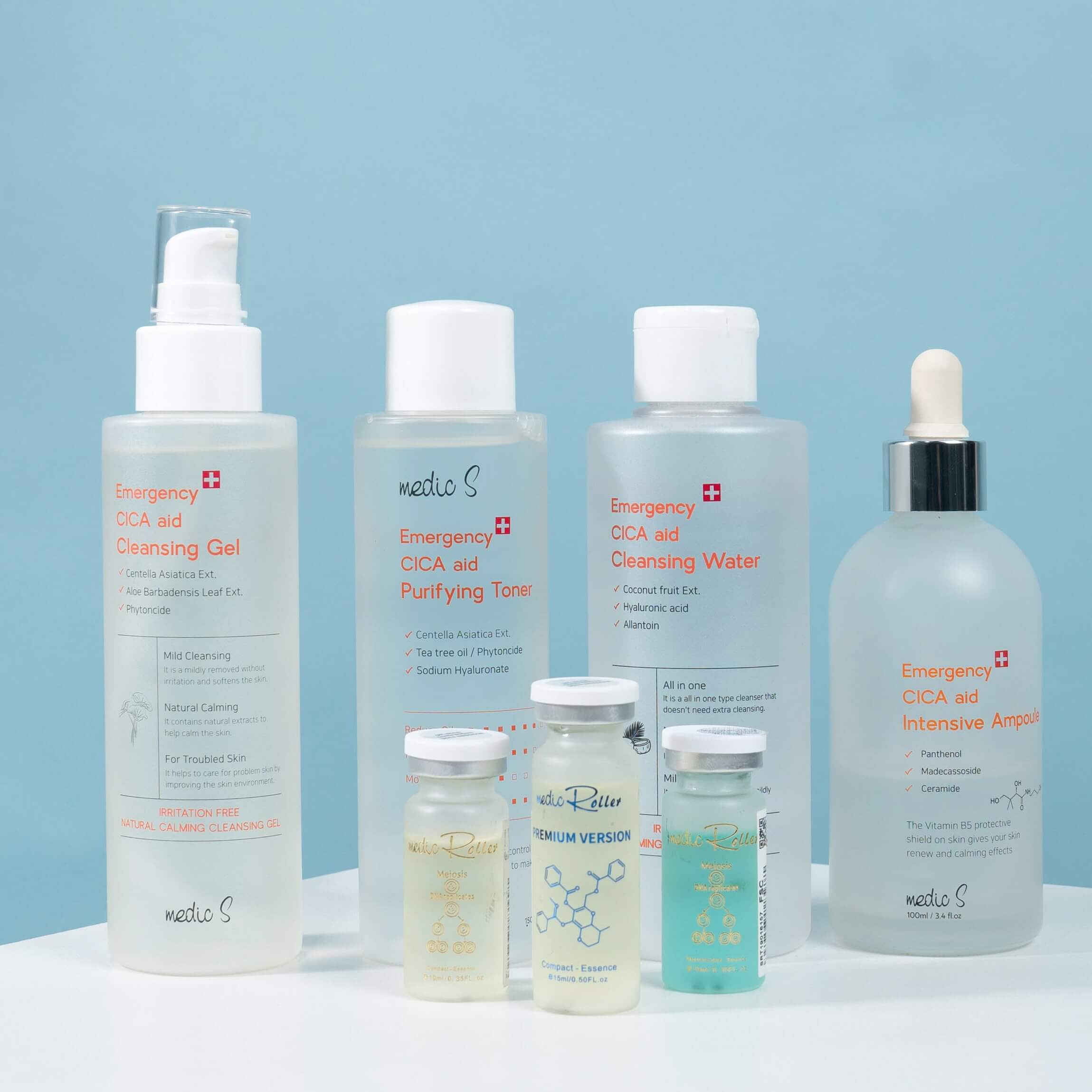 - Tinh chất căng bóng, cấp ẩm và mềm mịn – Emergency CICA aid Intensive Ampoule – Renew and Calming là sản phẩm cấp ẩm tuyệt vời cho làn da. Tinh chất căng bóng cấp ẩm và mềm mịn MedicS sẽ cung cấp độ ẩm dồi dào cho da, giúp hạn chế tình trạng mất nước, giúp cho làn da luôn tươi mát, căng bóng và mềm mịn. Tinh chất căng bóng cấp ẩm và mềm min MedicS có chứa Argan oil, là một loại dầu hiếm được chiết xuất từ hạt của quả cây Argan, hỗn hợp các loại axit béo omega, vitamin E, axit linoleic trong tinh dầu argan giúp dưỡng ẩm dịu nhẹ, làm mềm vùng da khô ráp, giảm tình trạng nhờn, mụn và có thể thấm sâu nuôi dưỡng từng tế bào da, chống lão hóa và giúp da săn chắc. Trong công thức có chứa Centella asiatica với thành phần hoạt động chính là các Triterpenoids Pentacyclic giúp cải thiện sức bền của da, cấp ẩm tuyệt đối, làm chậm quá trình làm sạm, nám da, giúp da căng mịn, tươi trẻ, trắng sáng hơn và Ceramide giúp thiết lập hàng rào bảo vệ da tối ưu.