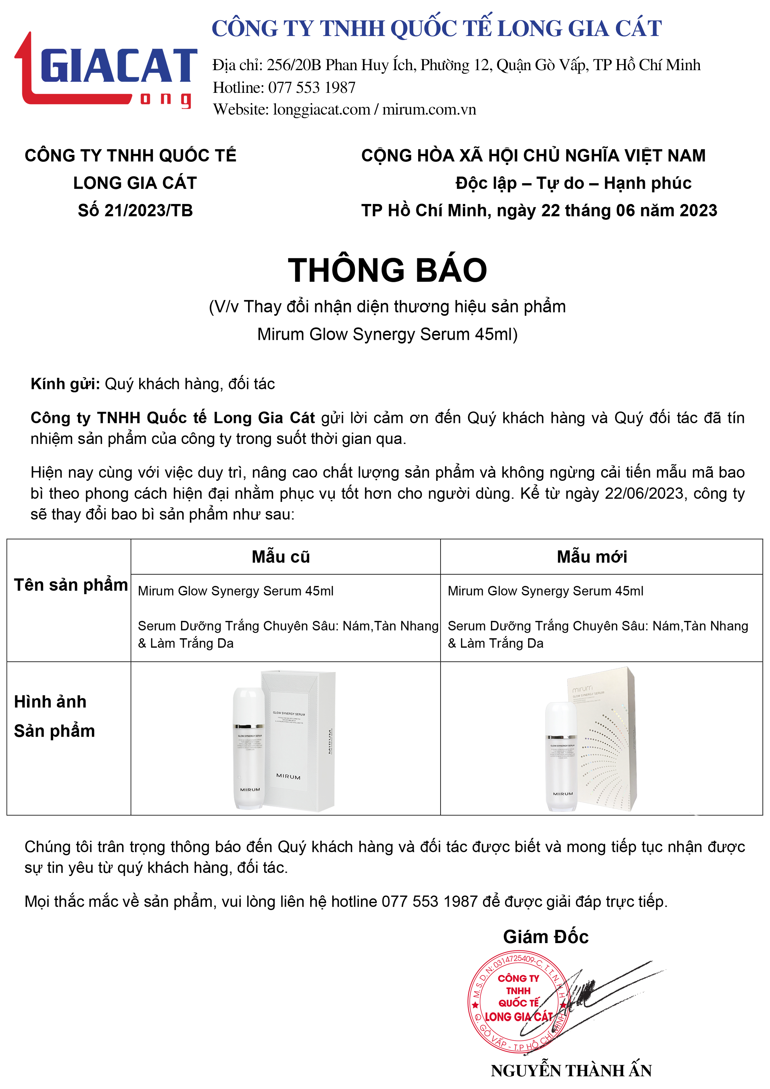 Tinh Chất Làm Trắng, Mờ Nám & Tàn Nhang Mirum đã được cấp Phiếu công bố mỹ phẩm số 104379/19/CBMP-QLD của Bộ Y tế và tem bảo hộ chống hàng giả của Bộ Công an nhằm chứng nhận sản phẩm an toàn & hợp pháp tại Việt Nam.