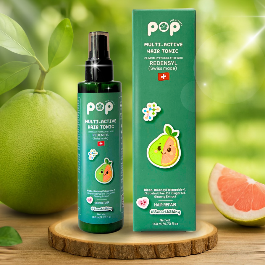 Hiểu được nỗi lo đó, nhà Pop đã cho ra đời Tinh chất dưỡng tóc đa tầng với công thức siêu dưỡng từ biotin, collagen, tinh dầu gừng, vỏ bưởi và các chiết xuất thiên nhiên. Bên cạnh đó điểm nổi bật của sản phẩm chính là thành phần Redensyl – hoạt chất đột phá từ Thụy Sĩ, nổi tiếng với khả năng kích thích mọc tóc từ tế bào gốc biểu bì, tăng cường mật độ tóc và kéo dài vòng đời sợi tóc. Redensyl tác động trực tiếp đến nang tóc đang suy yếu, giúp giảm rụng tóc hiệu quả và hỗ trợ mọc tóc mới rõ rệt sau 4–6 tuần sử dụng đều đặn.