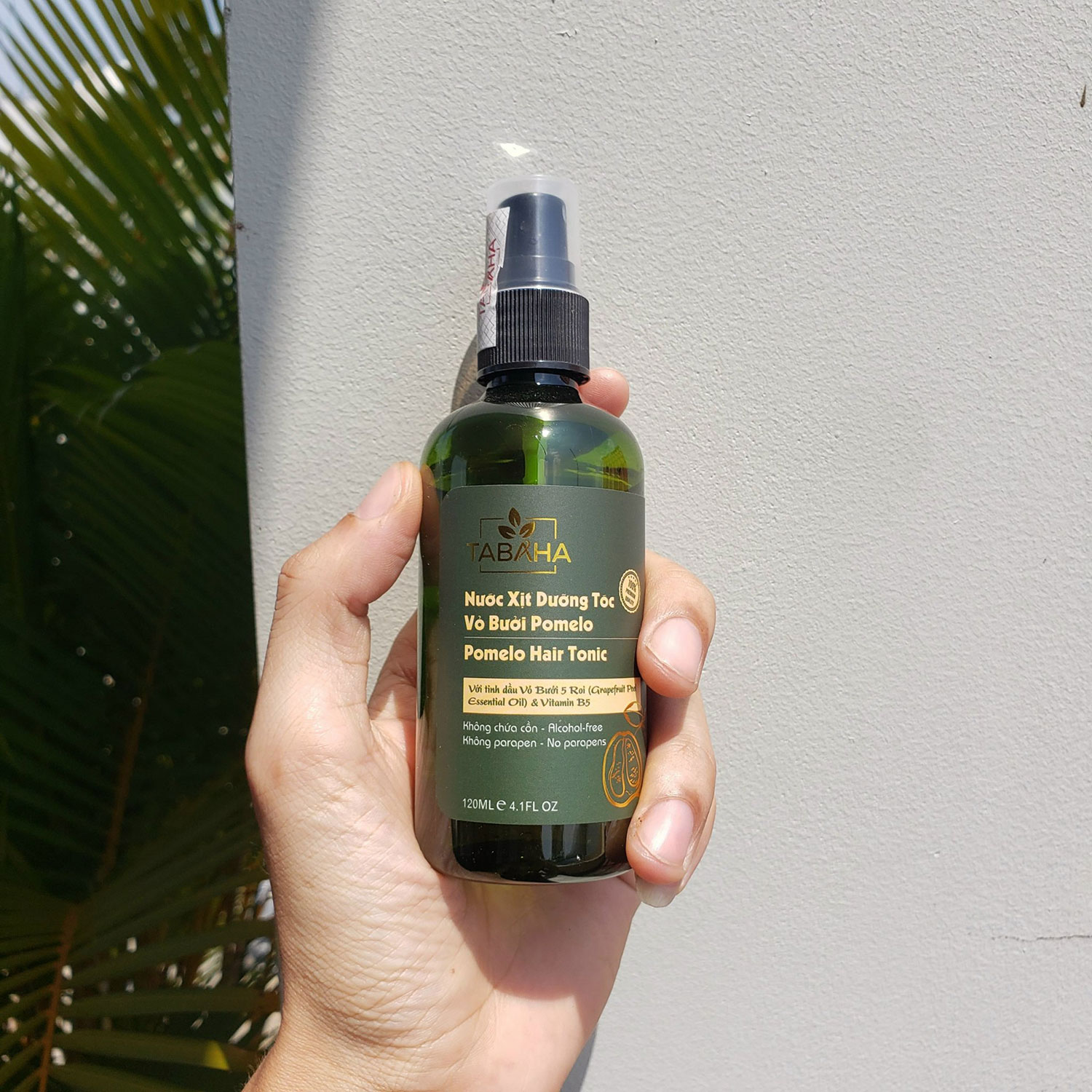 Nước dưỡng tóc tinh dầu bưởi (pomelo hair tonic) Tabaha 120ml Thành phần chính: - Tinh dầu vỏ bưởi: Do có tính kháng khuẩn và chống oxy hóa cao, tinh dầu vỏ bưởi giúp ngăn