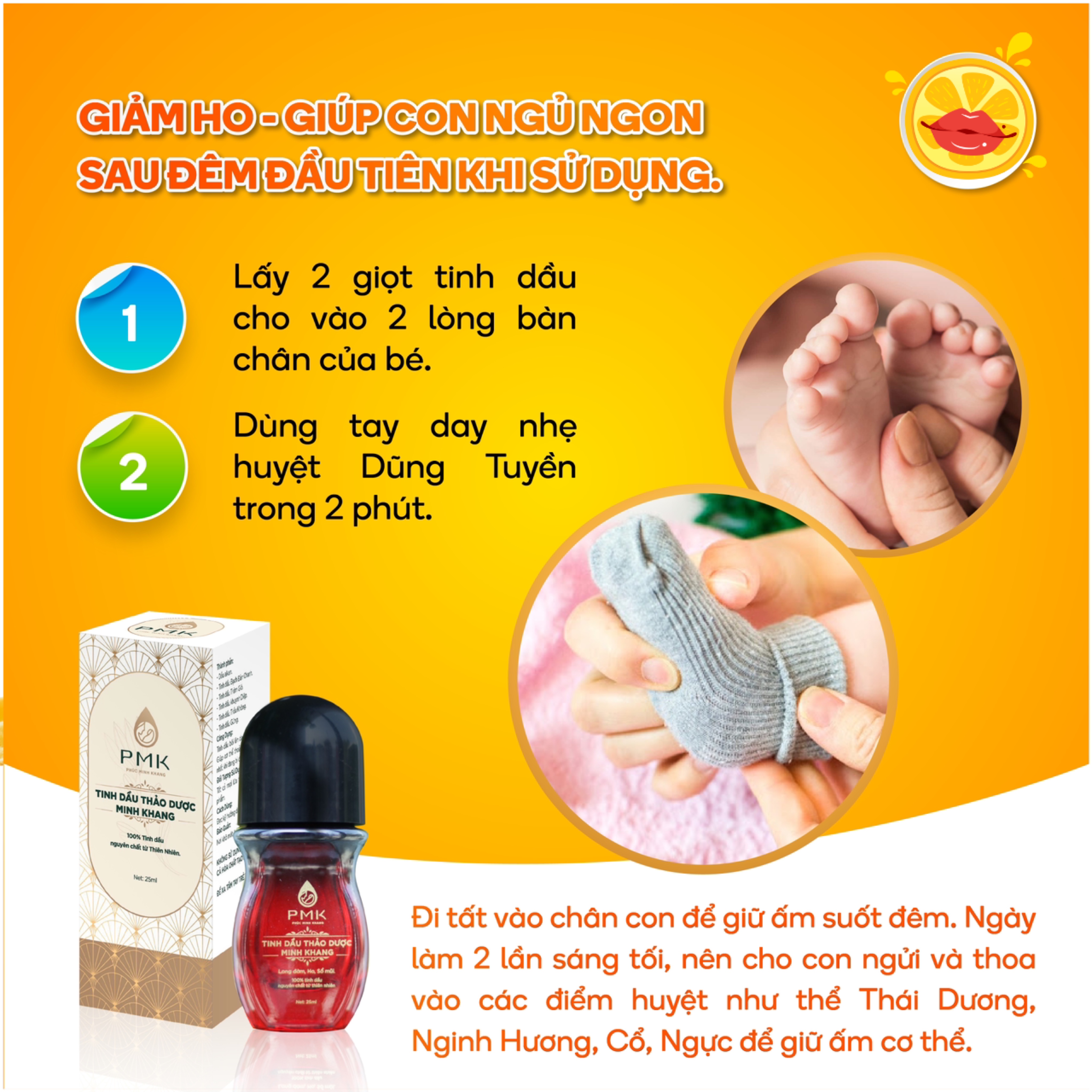 Cách dùng tinh dầu thảo dược Minh Khang chữa ho, khò khè, sổ mũi cho bé
